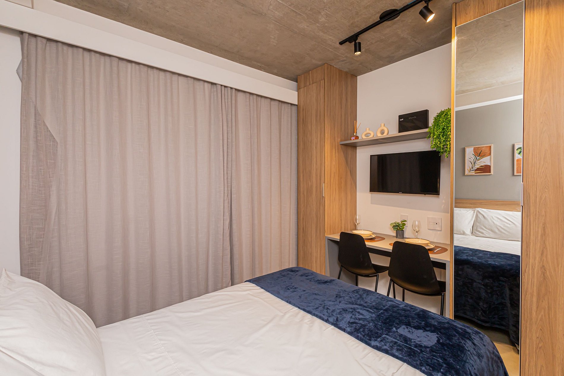 Situado em uma das melhores localizações de São Paulo, próximo à Rua Oscar Freire e à Avenida Paulista. Encontra-se também ao lado da Avenida Rebouças, uma das vias mais movimentadas da cidade, podendo haver ruídos provenientes do tráfego de veículos. Este apartamento está localizado na melhor região do Jardins, em um condomínio luxuoso e moderno, próximo à rua mais conhecida de São Paulo — a Rua Oscar Freire — e ao Parque Ibirapuera. O acesso ao Aeroporto de Congonhas é rápido, aproximadamente 20 minutos de distância. Destaques: Espaço de trabalho com Wi-Fi de alta velocidade; Cozinha equipada, incluindo cafeteira elétrica; Cama com enxoval padrão hotelaria premium. Comodidades próximas: Carrefour localizado ao lado do condomínio; Padaria em frente, ideal para um café da manhã completo.