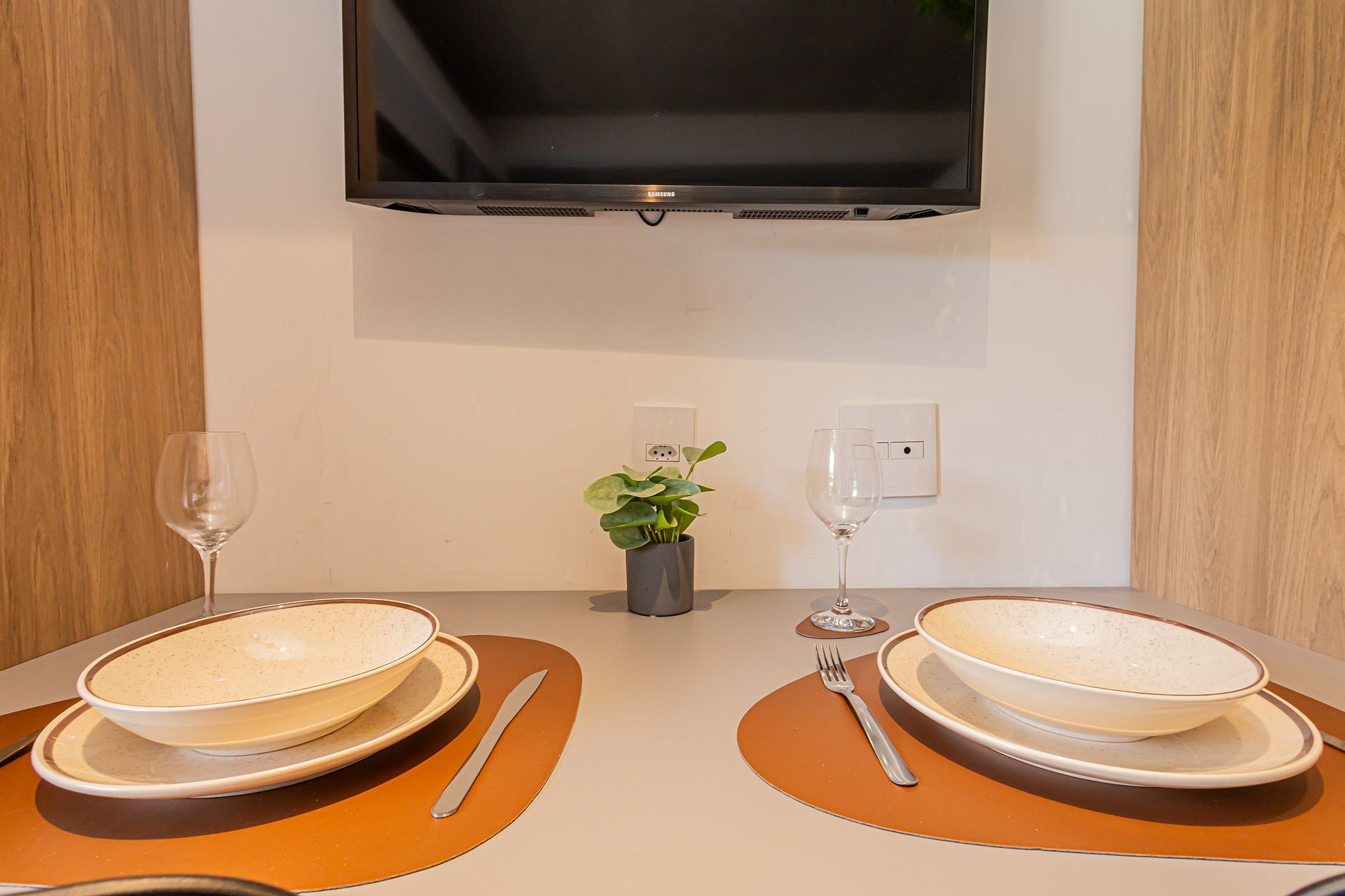 - Academia completa. - Cowork - Piscina com borda infinita no ultimo andar com vista deslumbrante. - Área gourmet. - Lavanderia compartilhada. - Cozinha Compartilhada. - Portaria 24h. Caros Hóspedes: NÃO possui vaga no estacionamento.