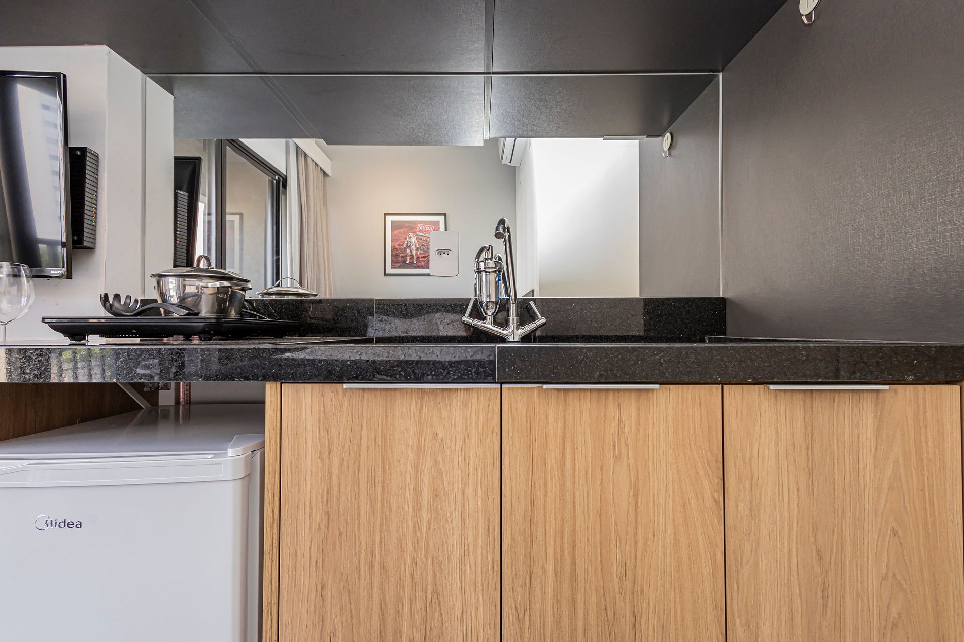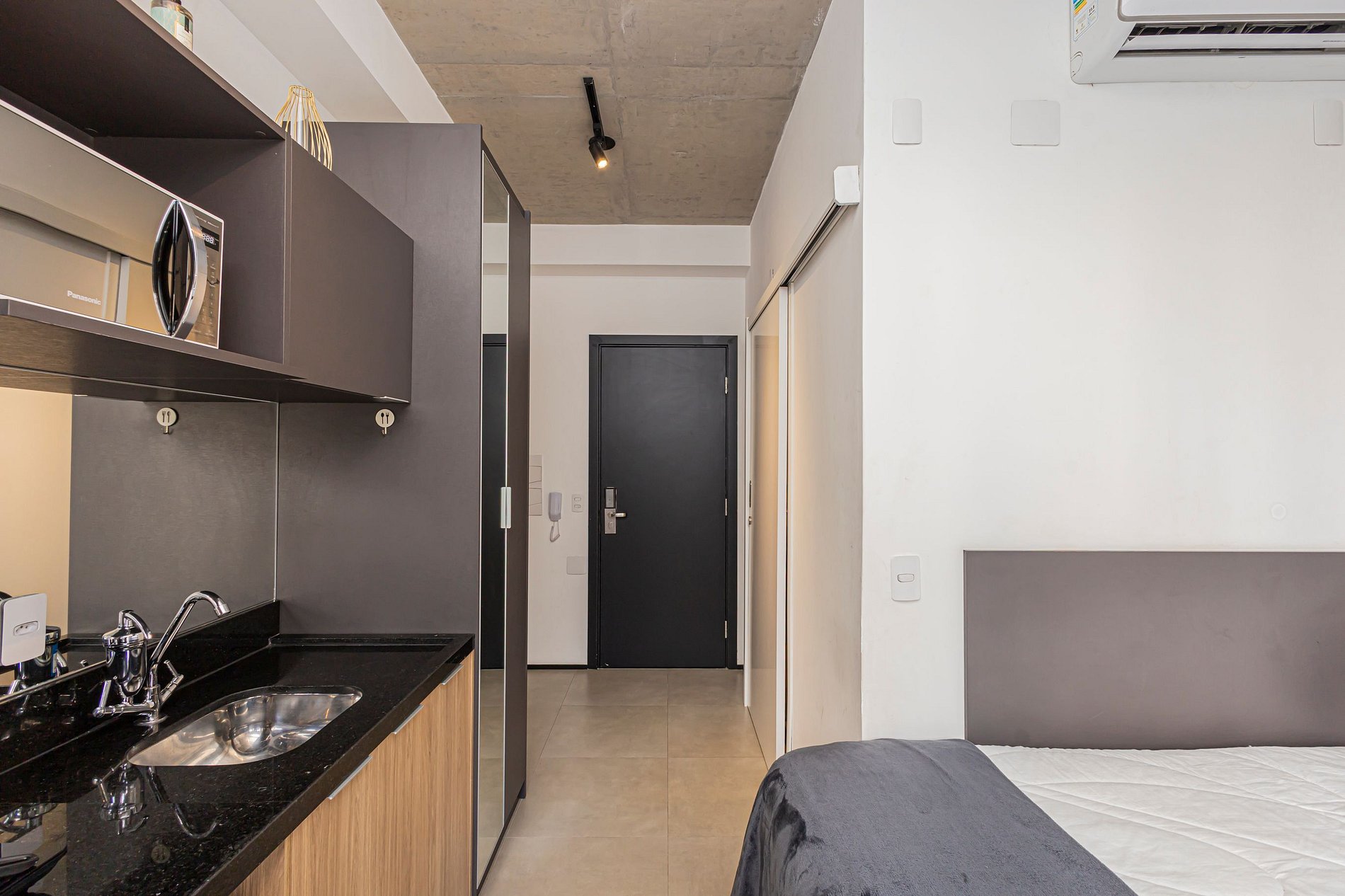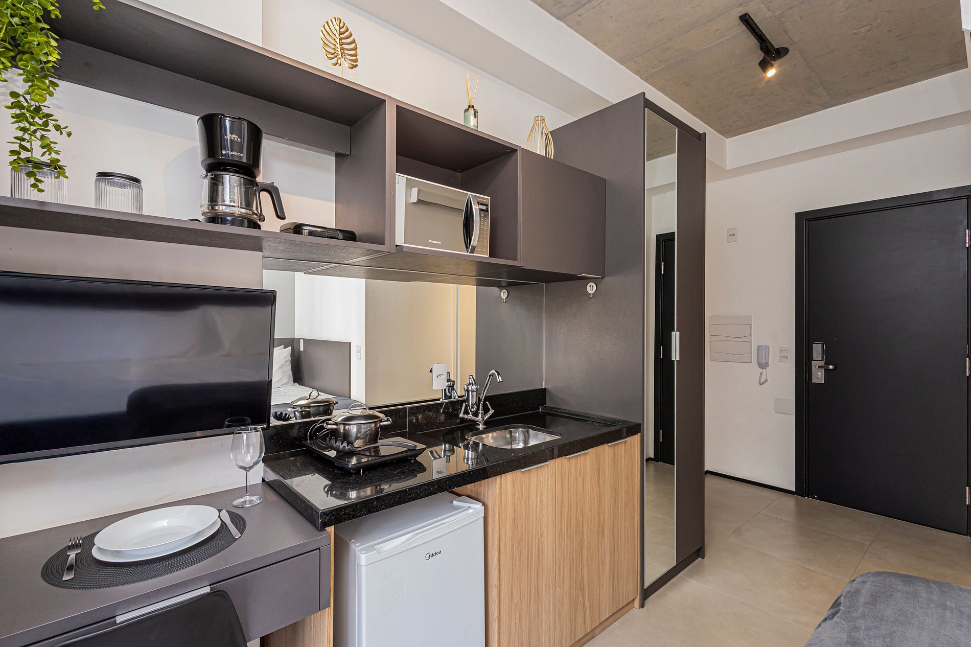 O espaço é um studio moderno e funcional, com ambiente climatizado, Wi-Fi rápido, cozinha compacta equipada, cama confortável e uma decoração clean e aconchegante. É perfeito para viajantes solo, casais, estudantes, profissionais em home office ou qualquer pessoa que deseja ficar perto de tudo.