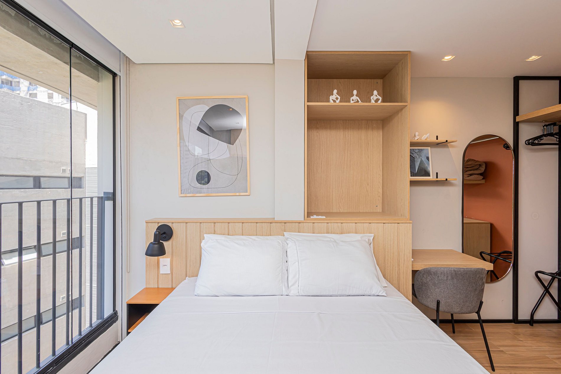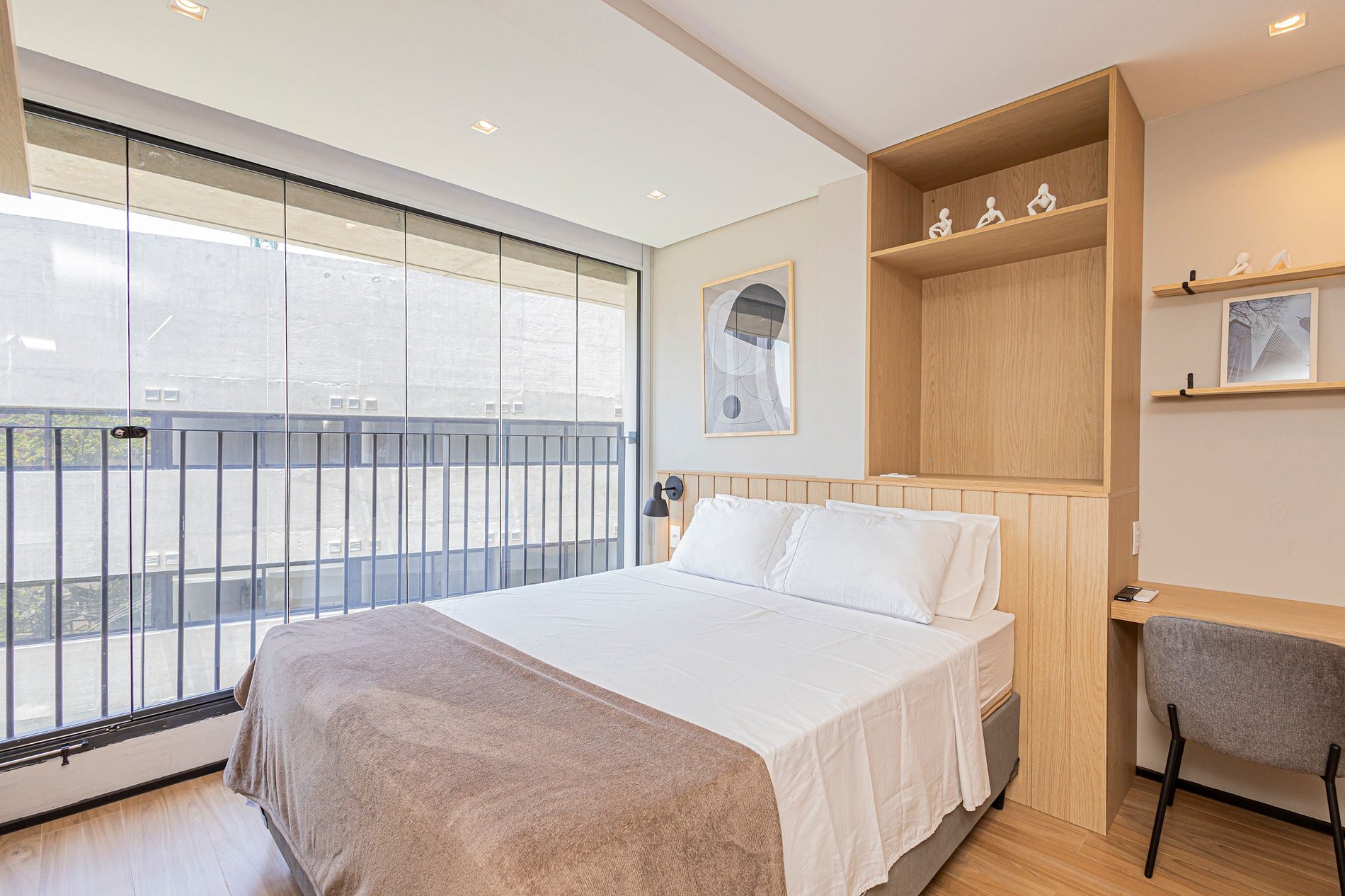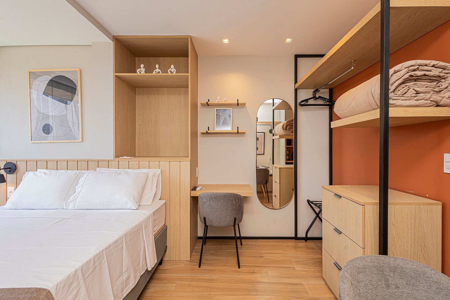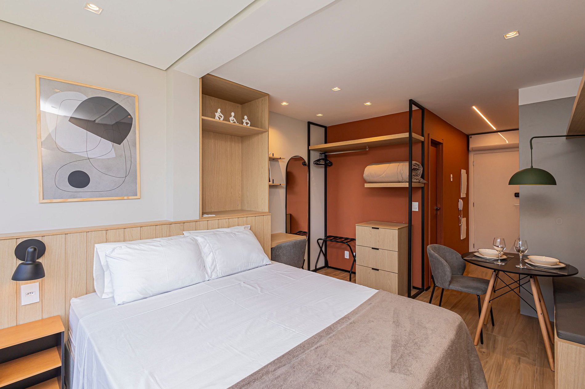 Este studio foi planejado para oferecer conforto e funcionalidade, com ambiente climatizado, decoração contemporânea e tudo o que você precisa para uma estadia agradável.