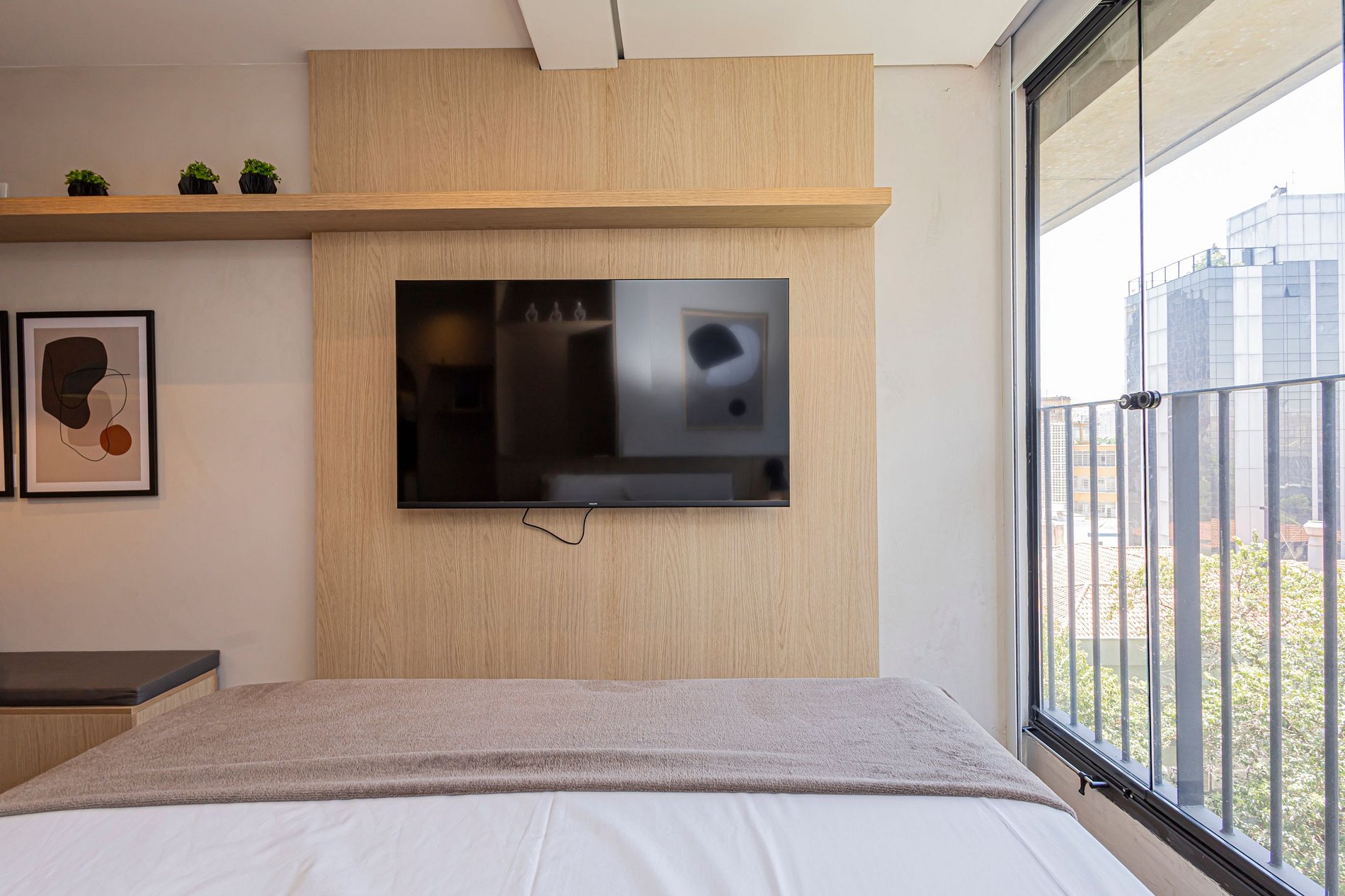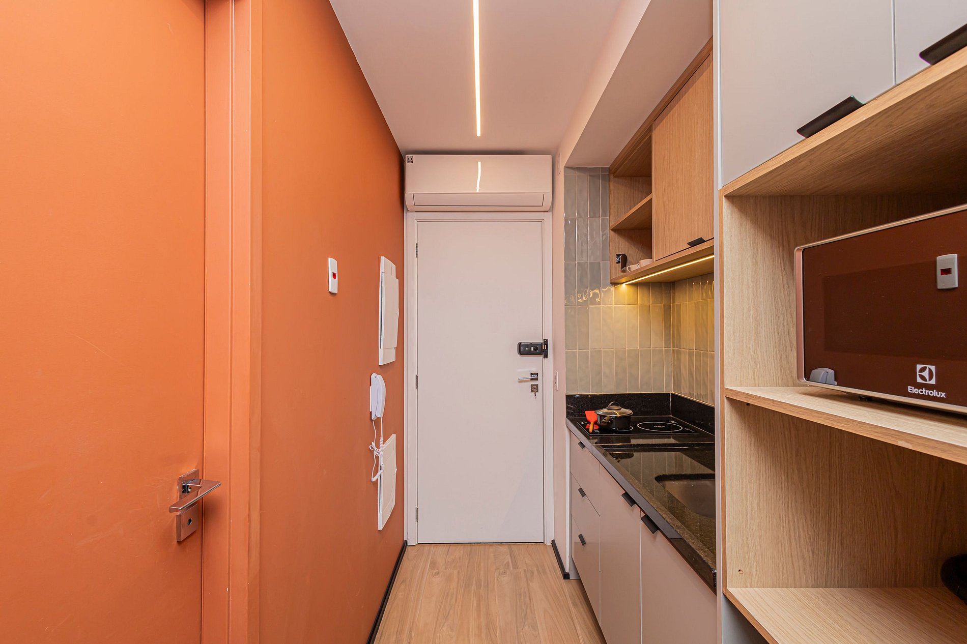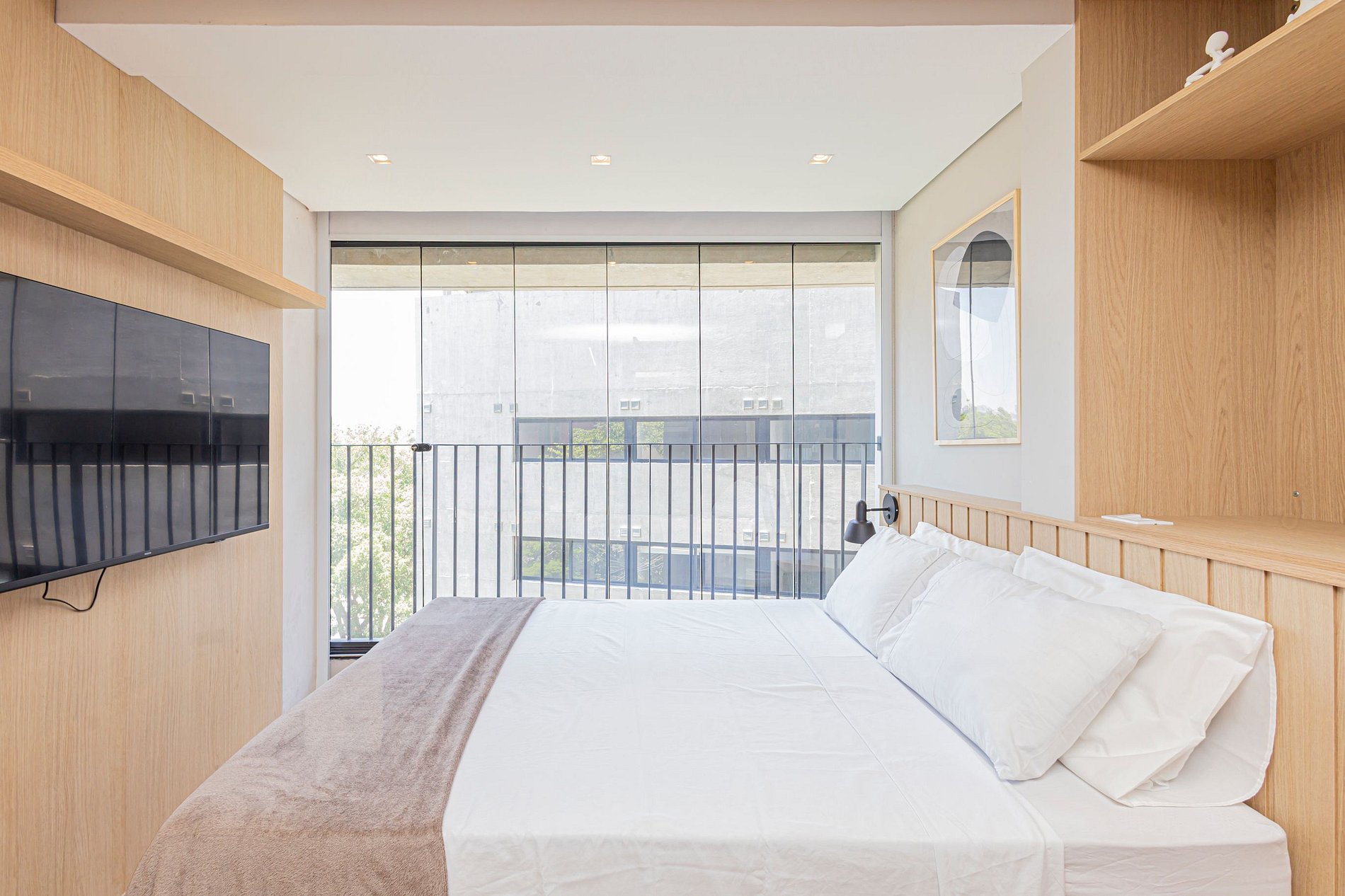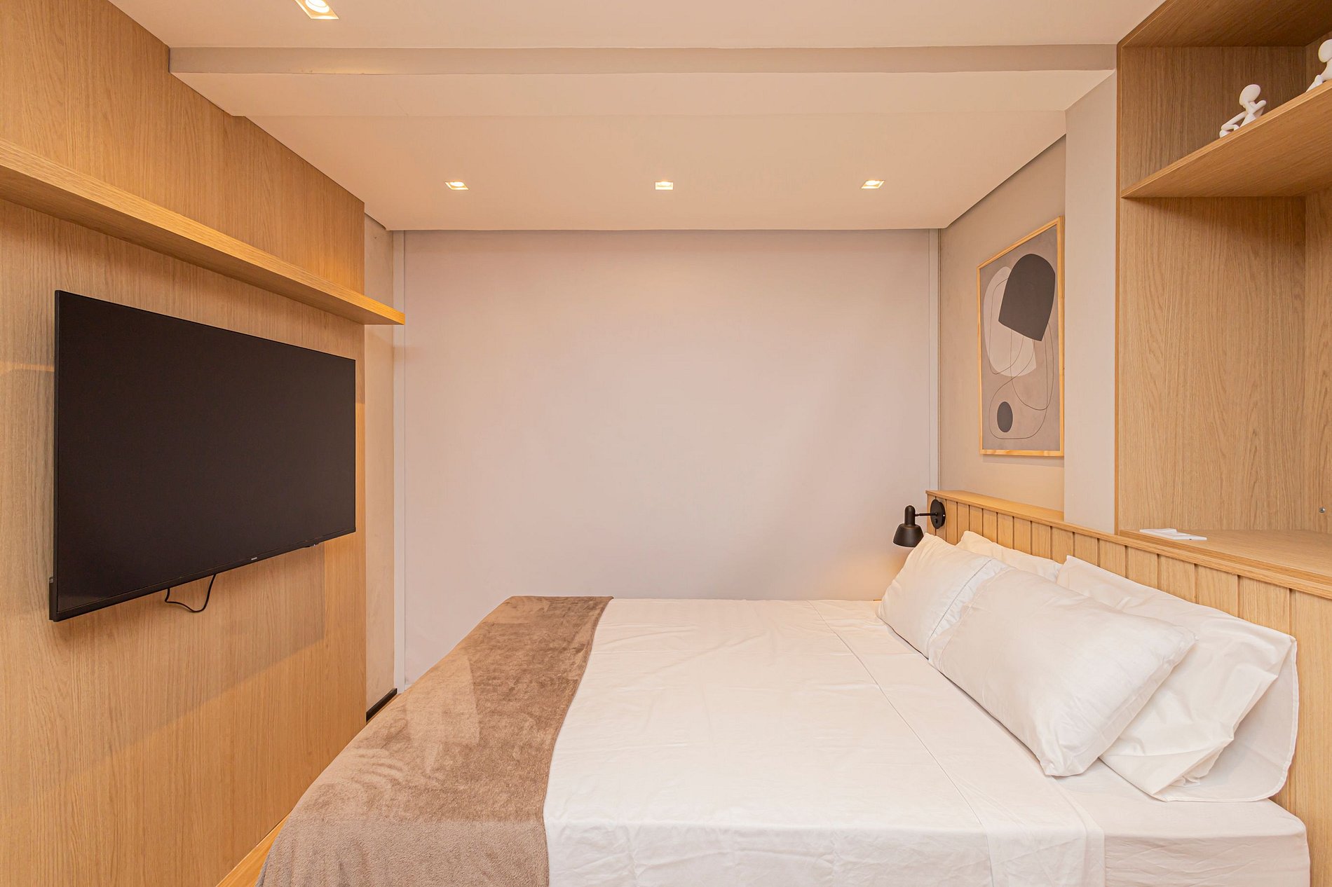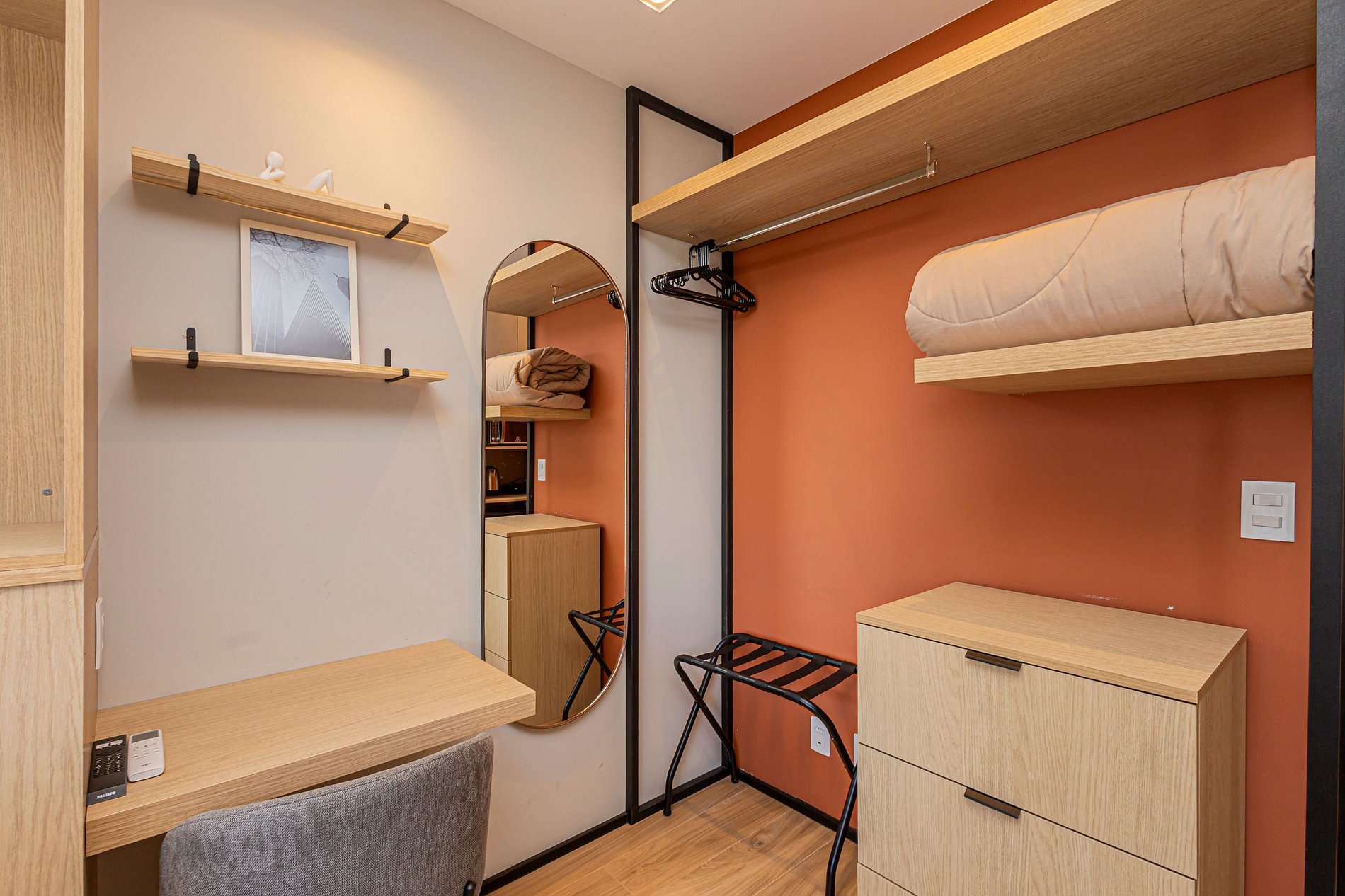 Este studio foi planejado para oferecer conforto e funcionalidade, com ambiente climatizado, decoração contemporânea e tudo o que você precisa para uma estadia agradável.