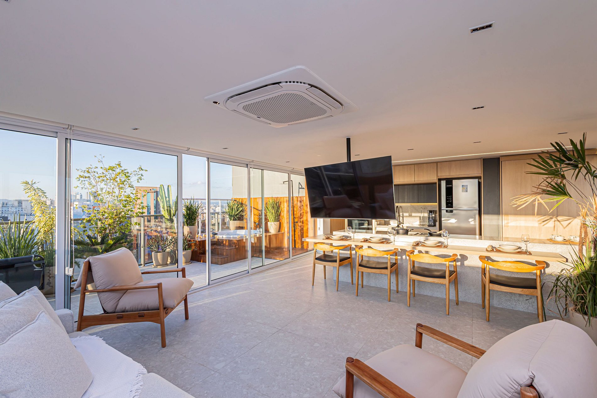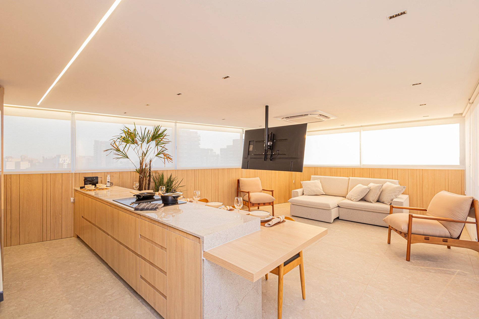 Ambiente moderno, confortável e ideal para lazer ou trabalho. Destaques do Apartamento: