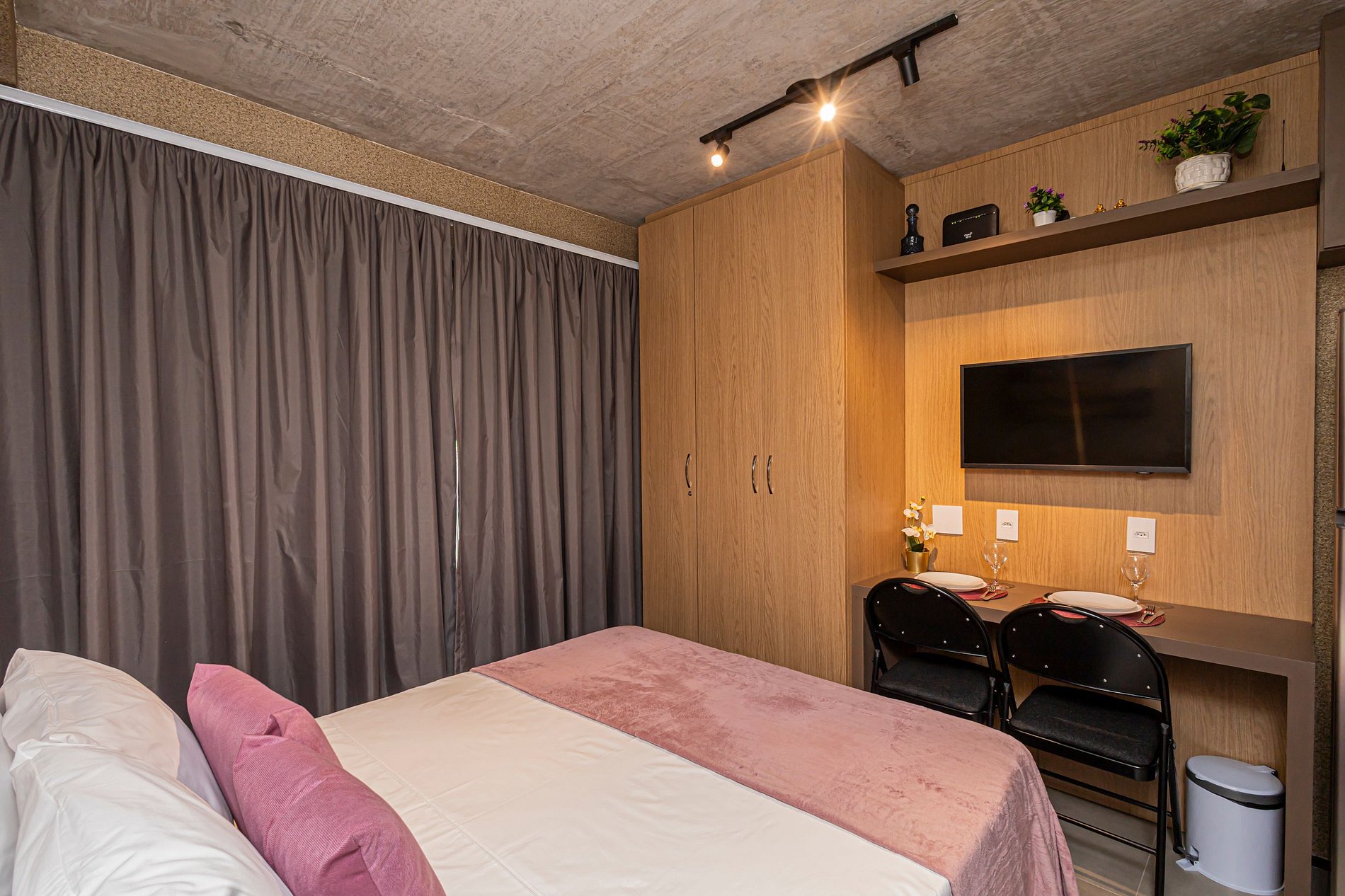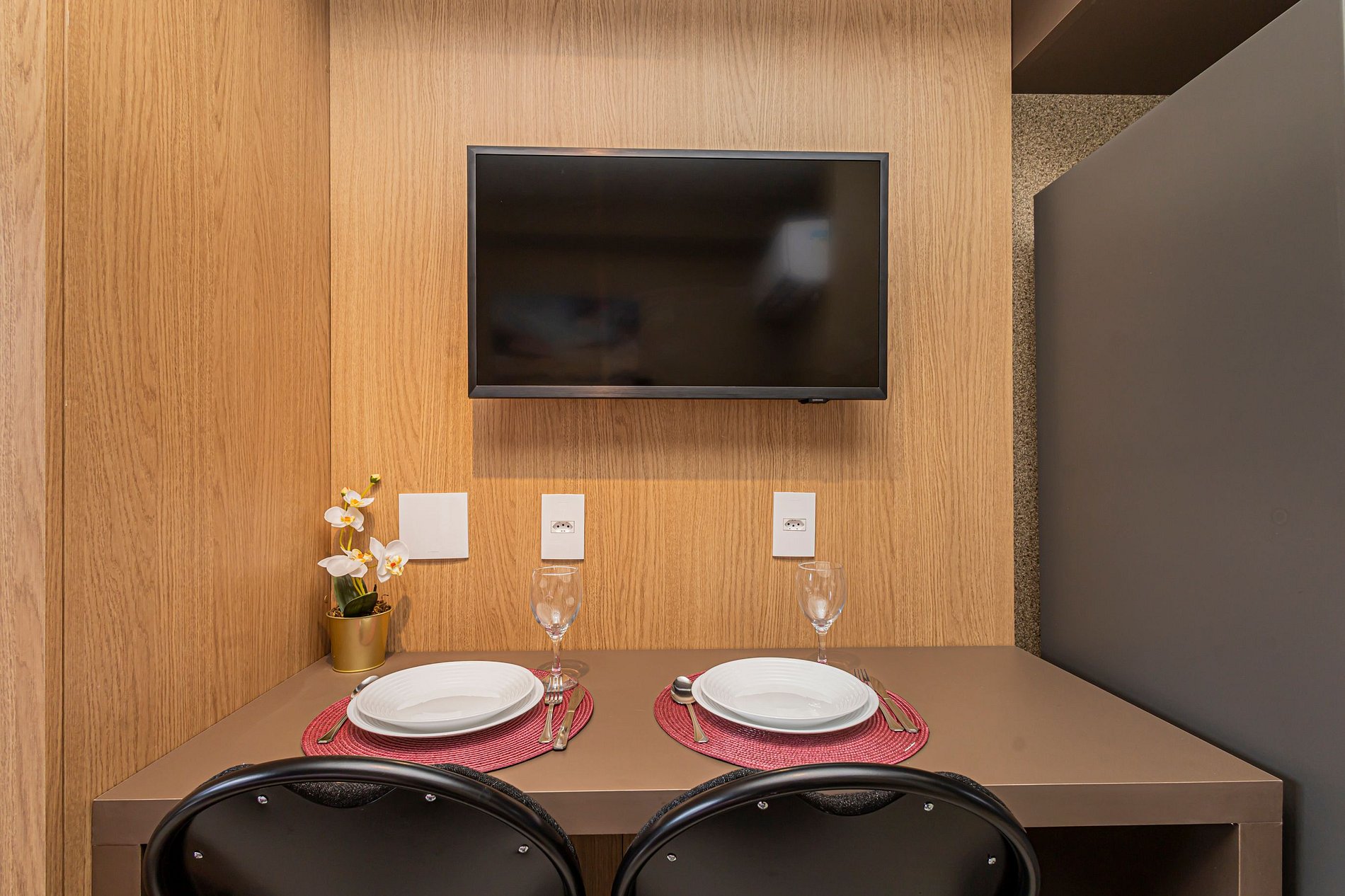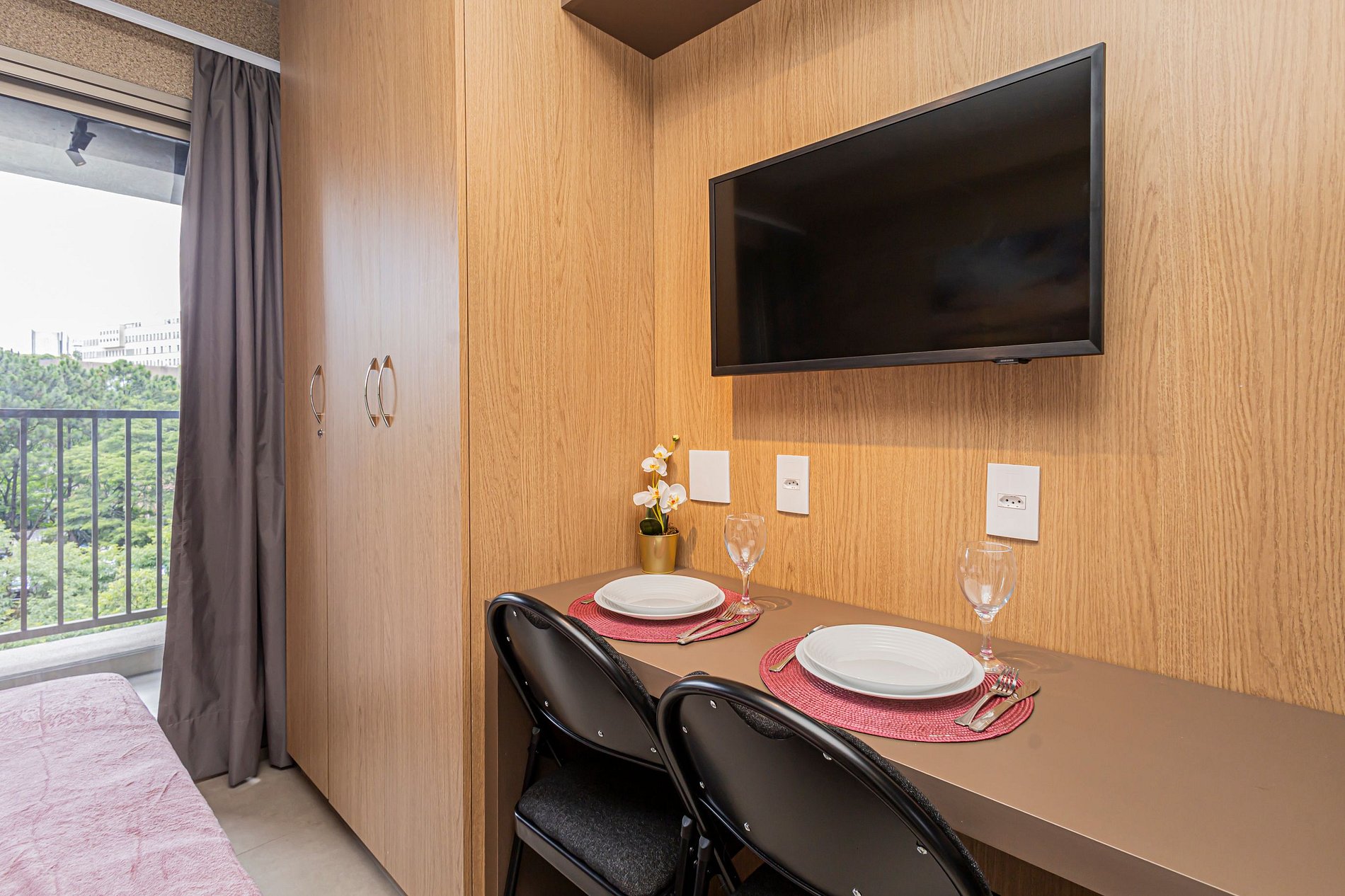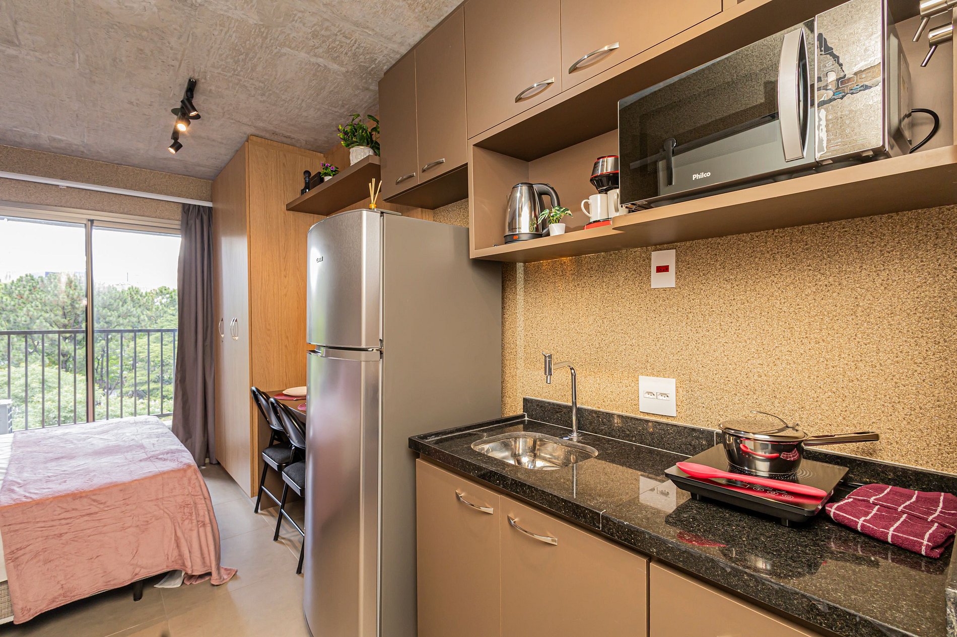 - Academia completa. - Cowork - Piscina com borda infinita no ultimo andar com vista deslumbrante. - Área gourmet. - Lavanderia compartilhada. - Cozinha Compartilhada. - Portaria 24h. Caros Hóspedes: NÃO possui vaga no estacionamento.