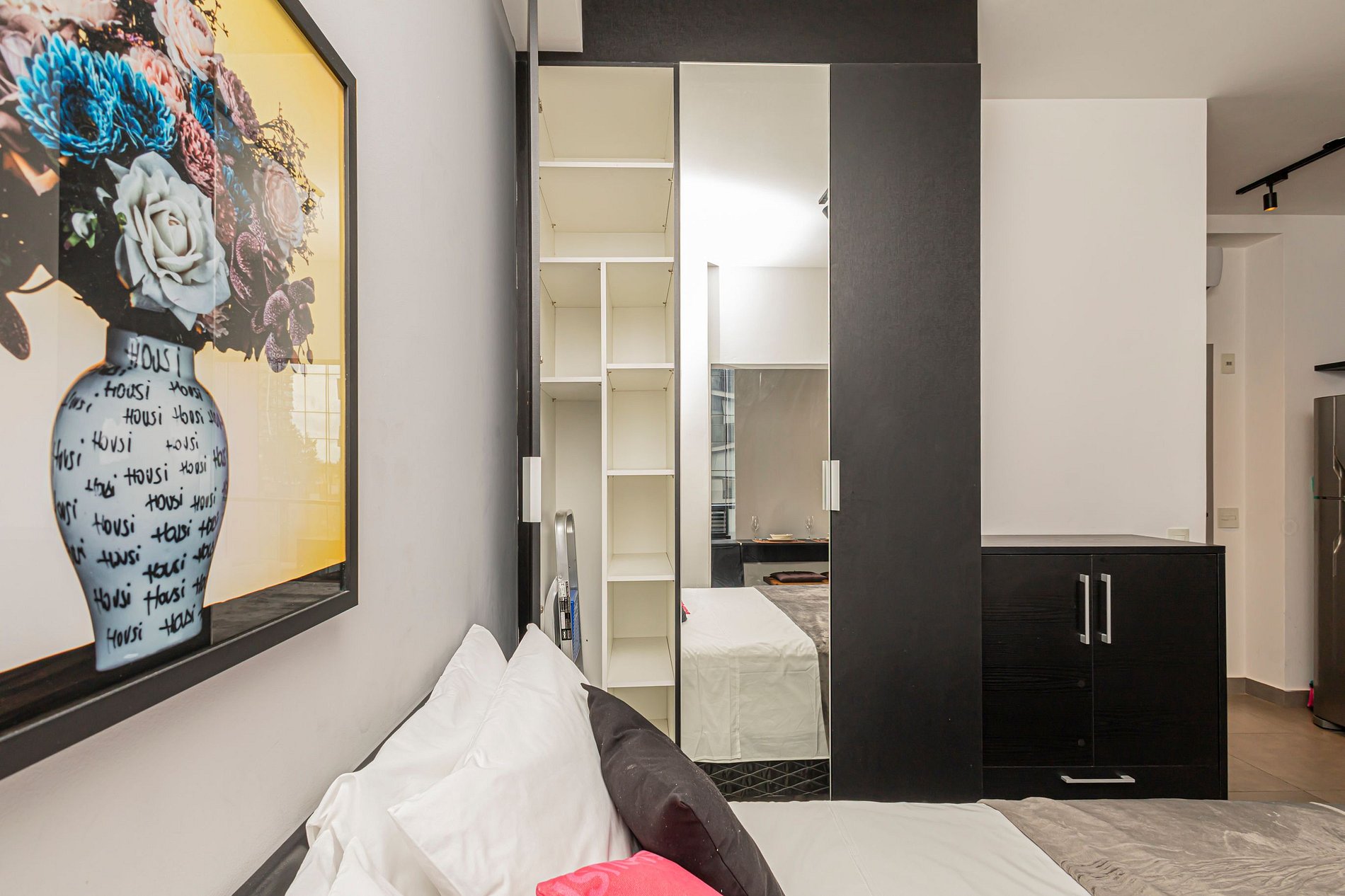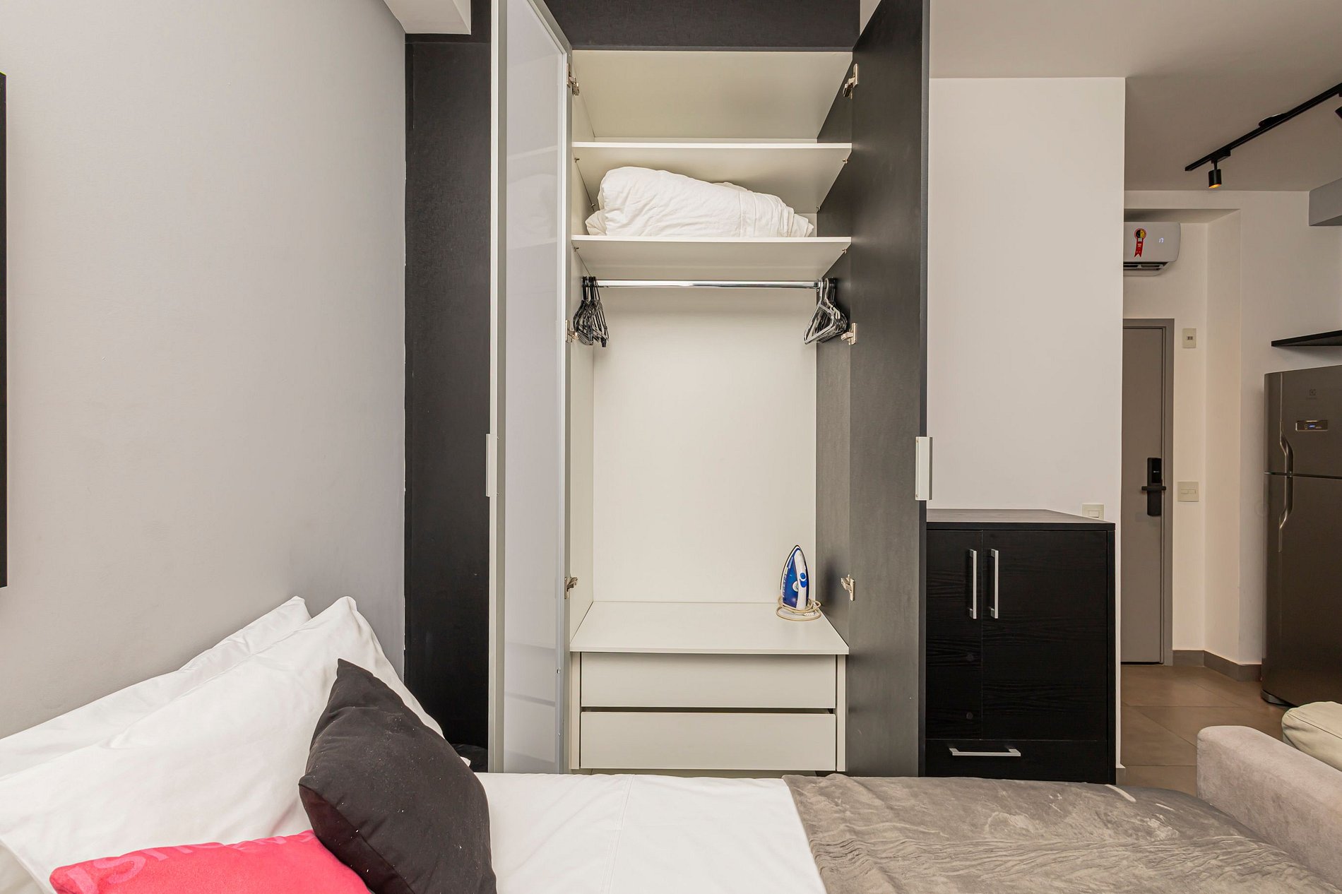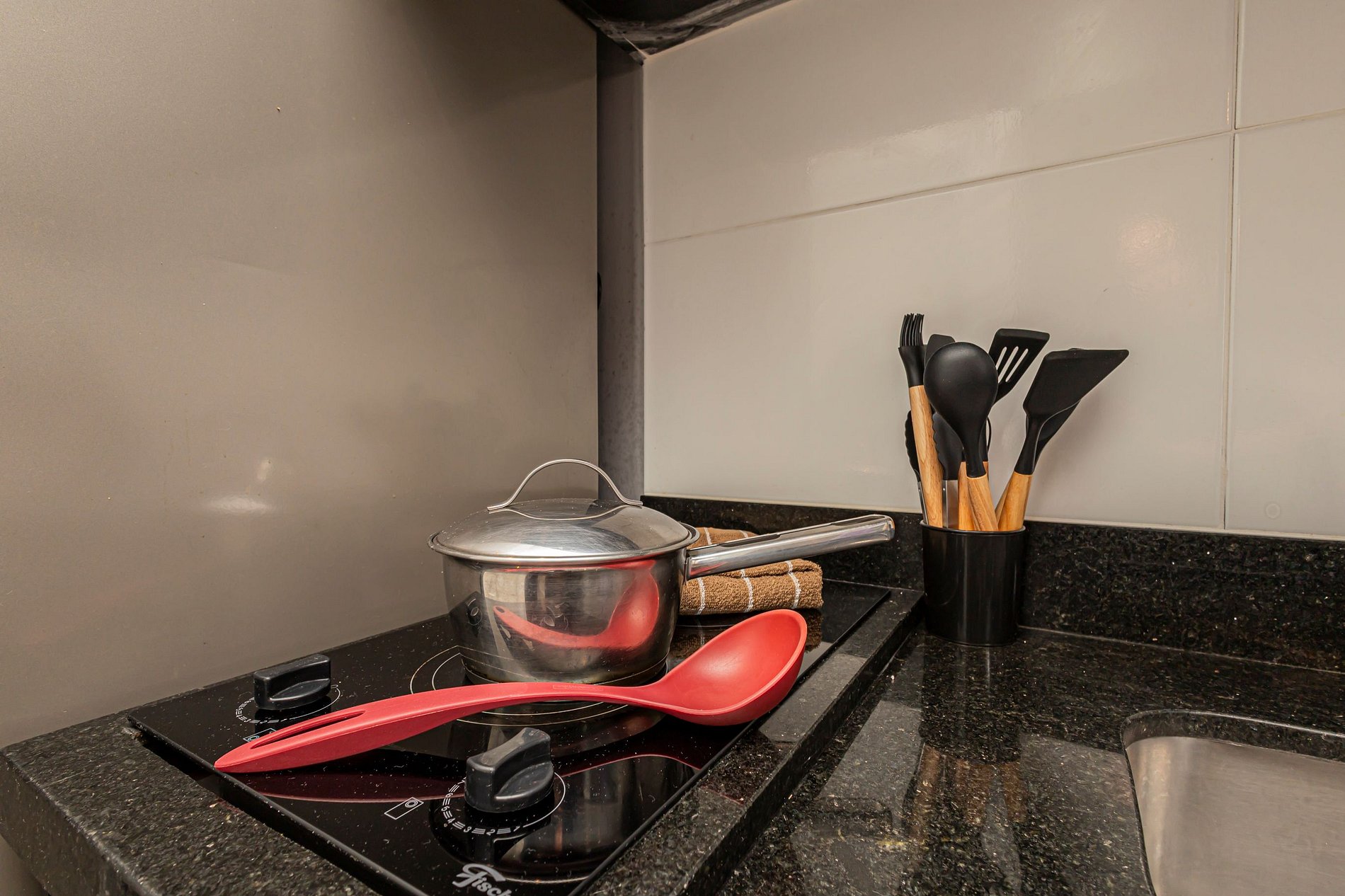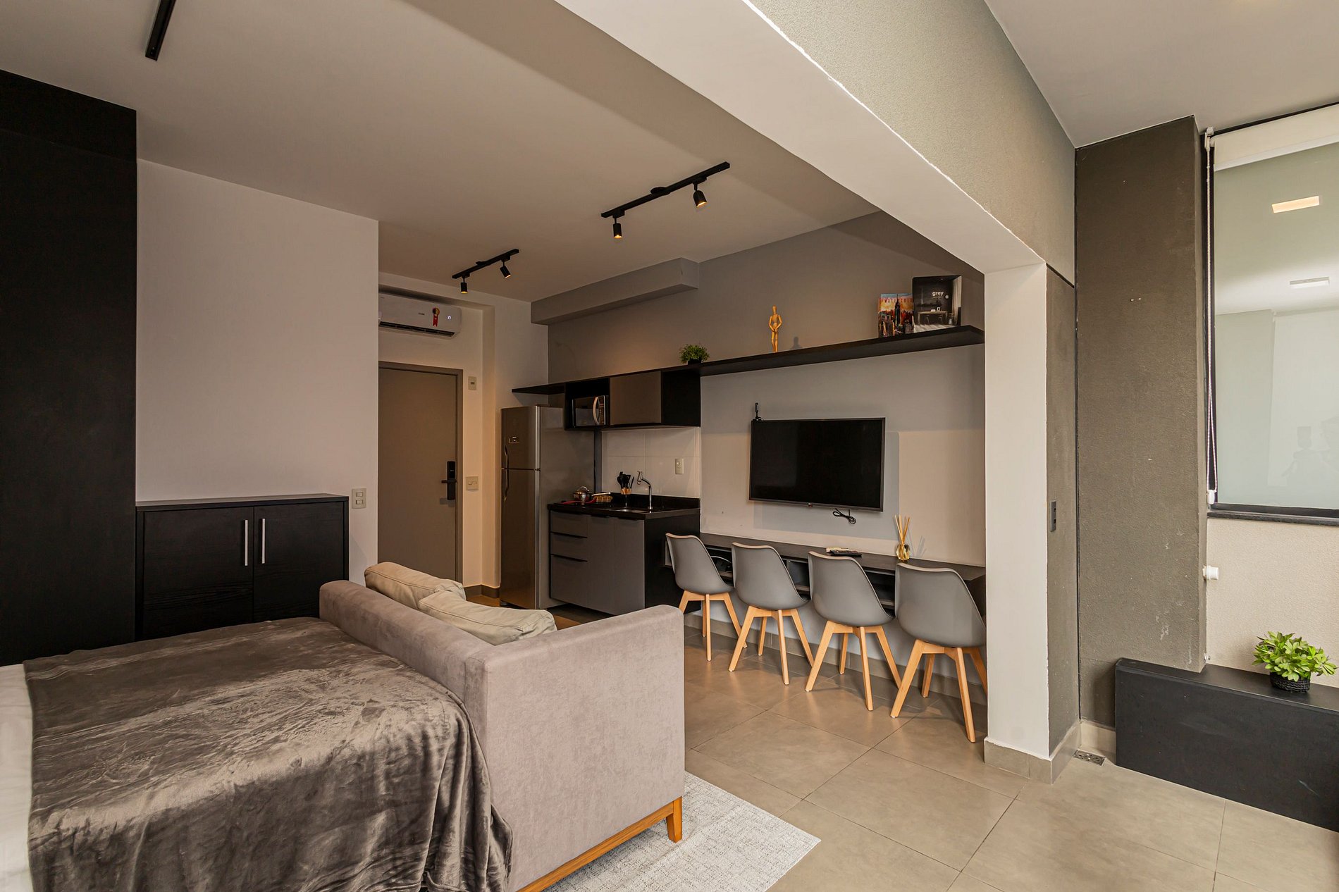 O studio oferece um ambiente iluminado, funcional e confortável, ideal tanto para estadias curtas quanto longas.
