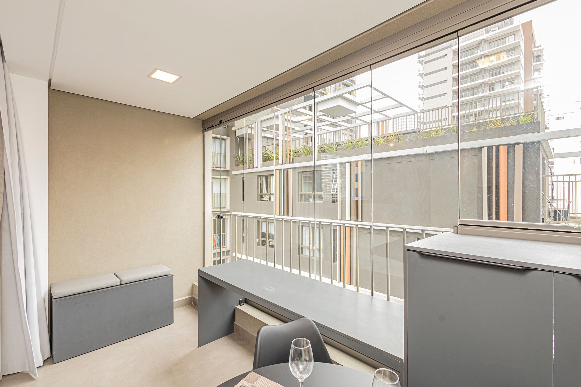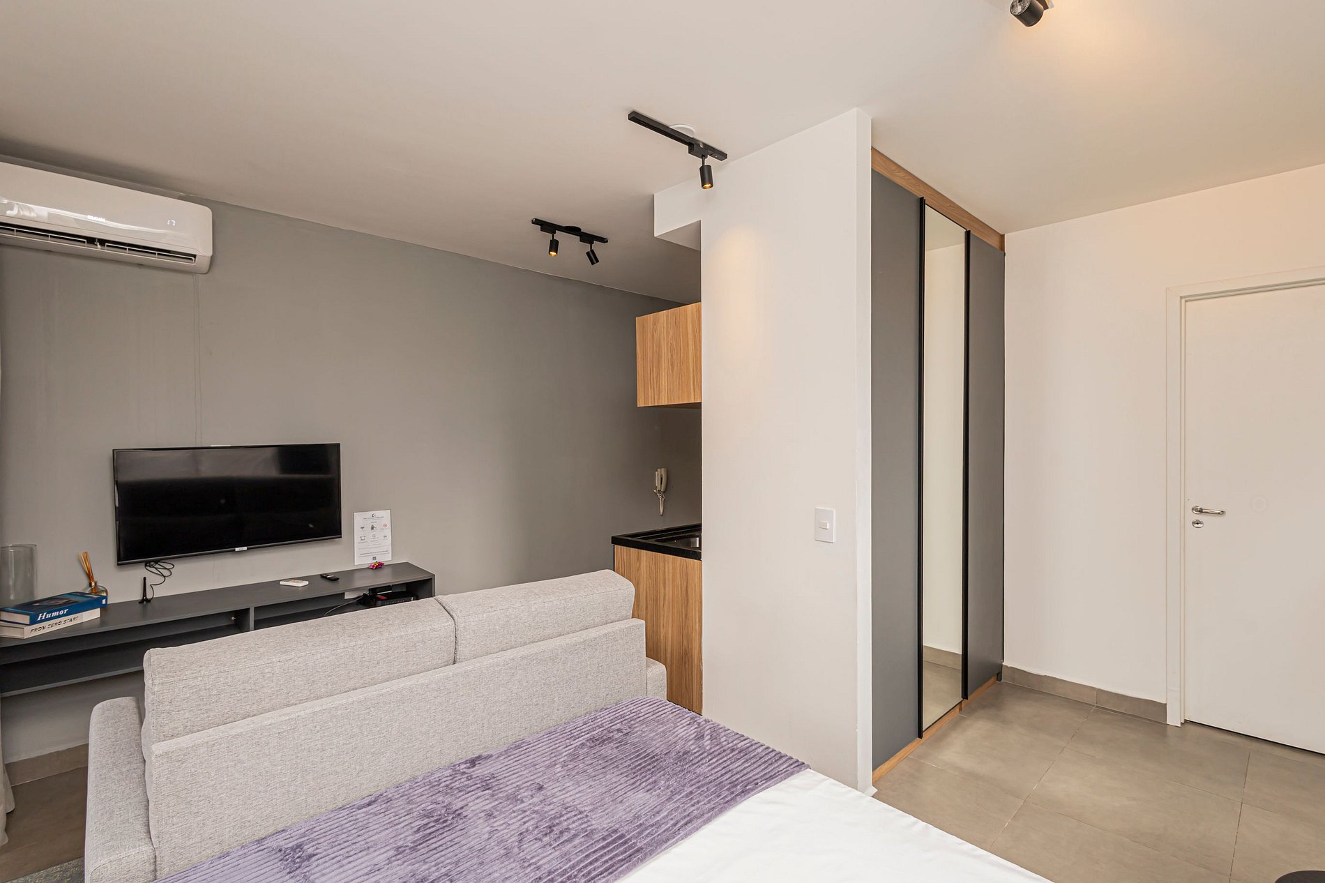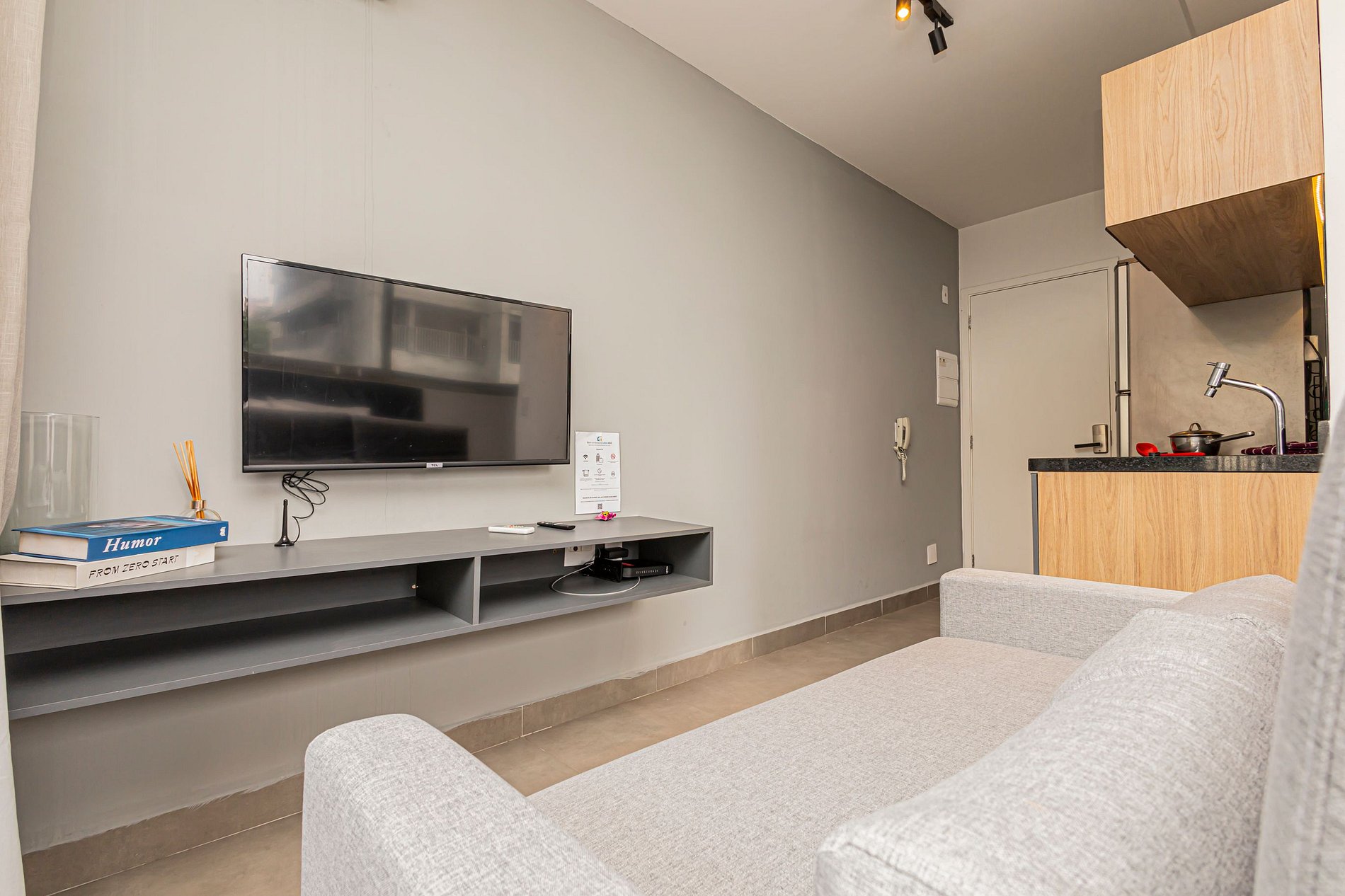O studio oferece um ambiente iluminado, funcional e confortável, ideal tanto para estadias curtas quanto prolongadas.
