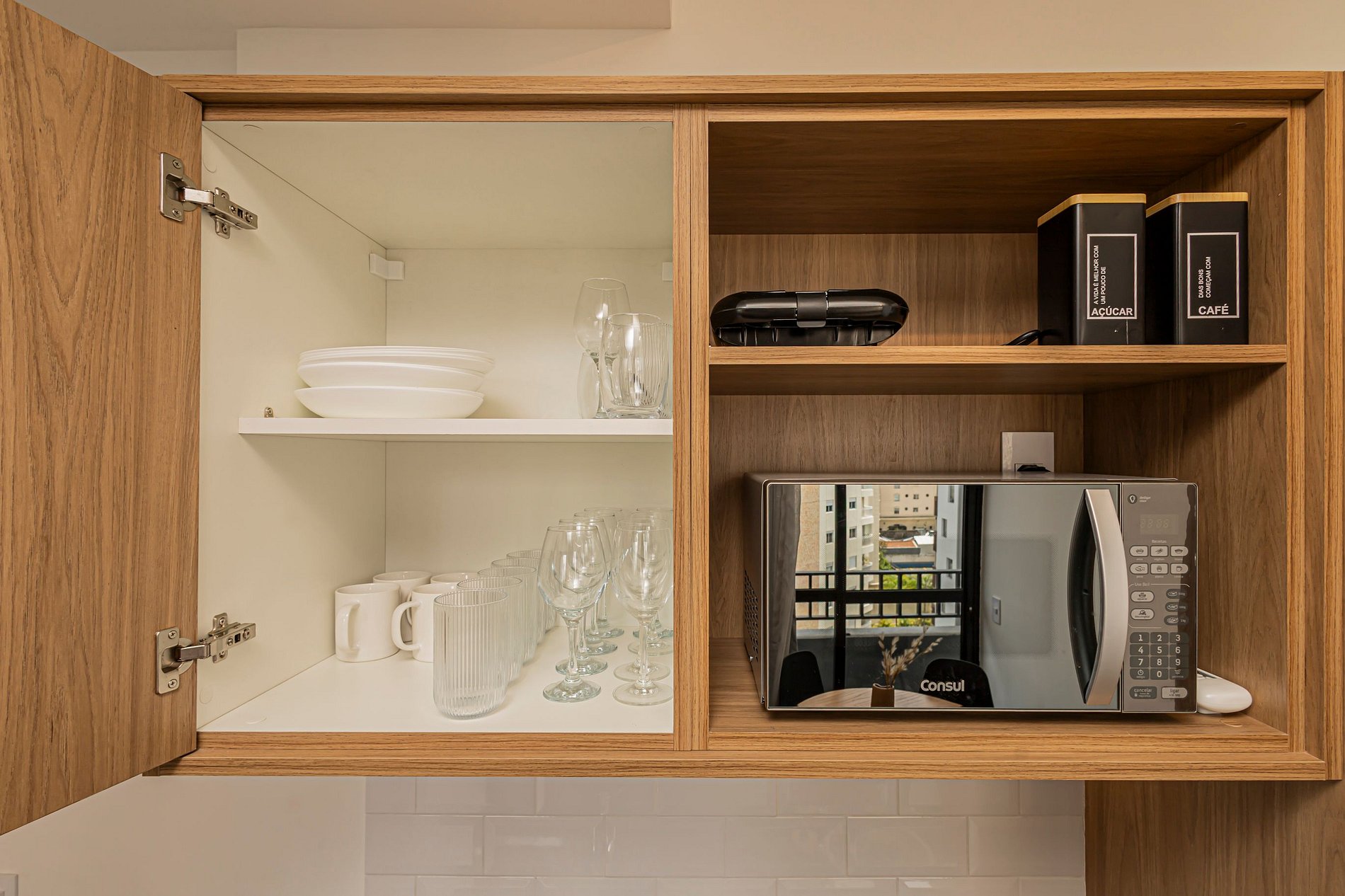 Cozinha equipada: utensílios domésticos completos para preparar qualquer refeição.