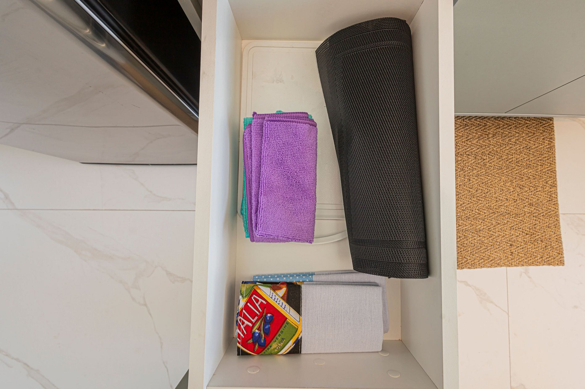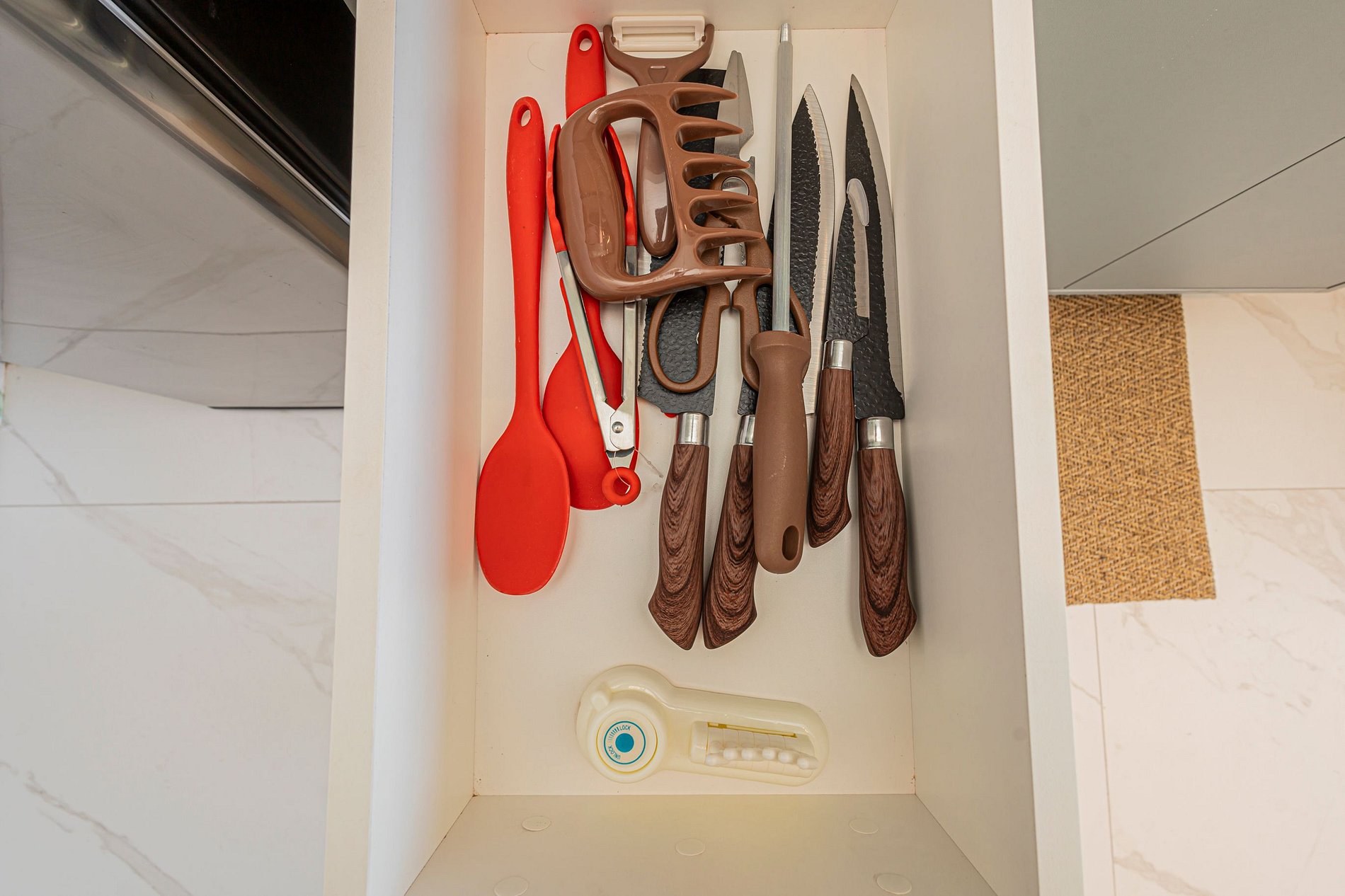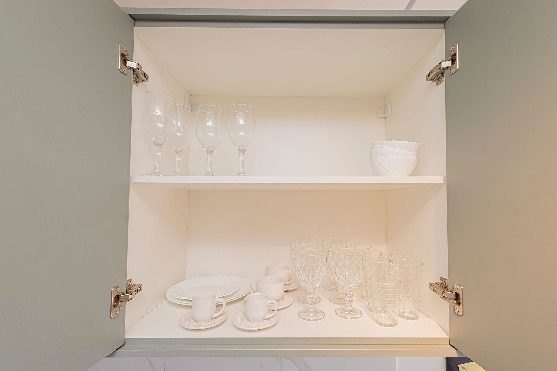 • Cozinha compacta e eficiente: Equipada com micro-ondas, fogão, geladeira e todos os utensílios necessários para preparar refeições rápidas e práticas.