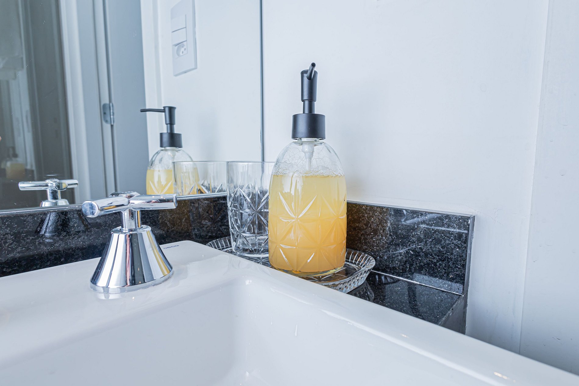 - Itens essenciais: *shampoo, condicionador, sabonete líquido, papel higiênico*