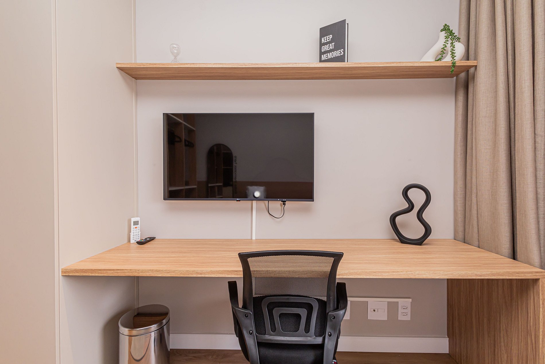 • Espaço para trabalho: Área dedicada para quem precisa trabalhar remotamente, com Wi-Fi de alta velocidade.