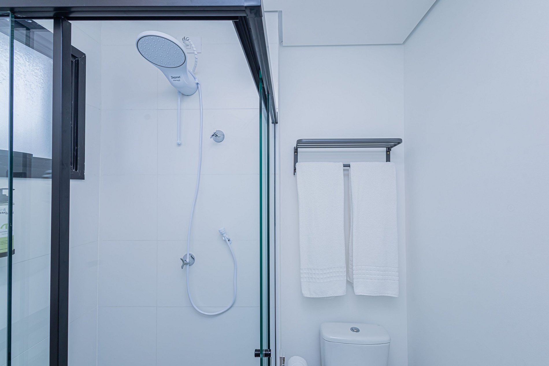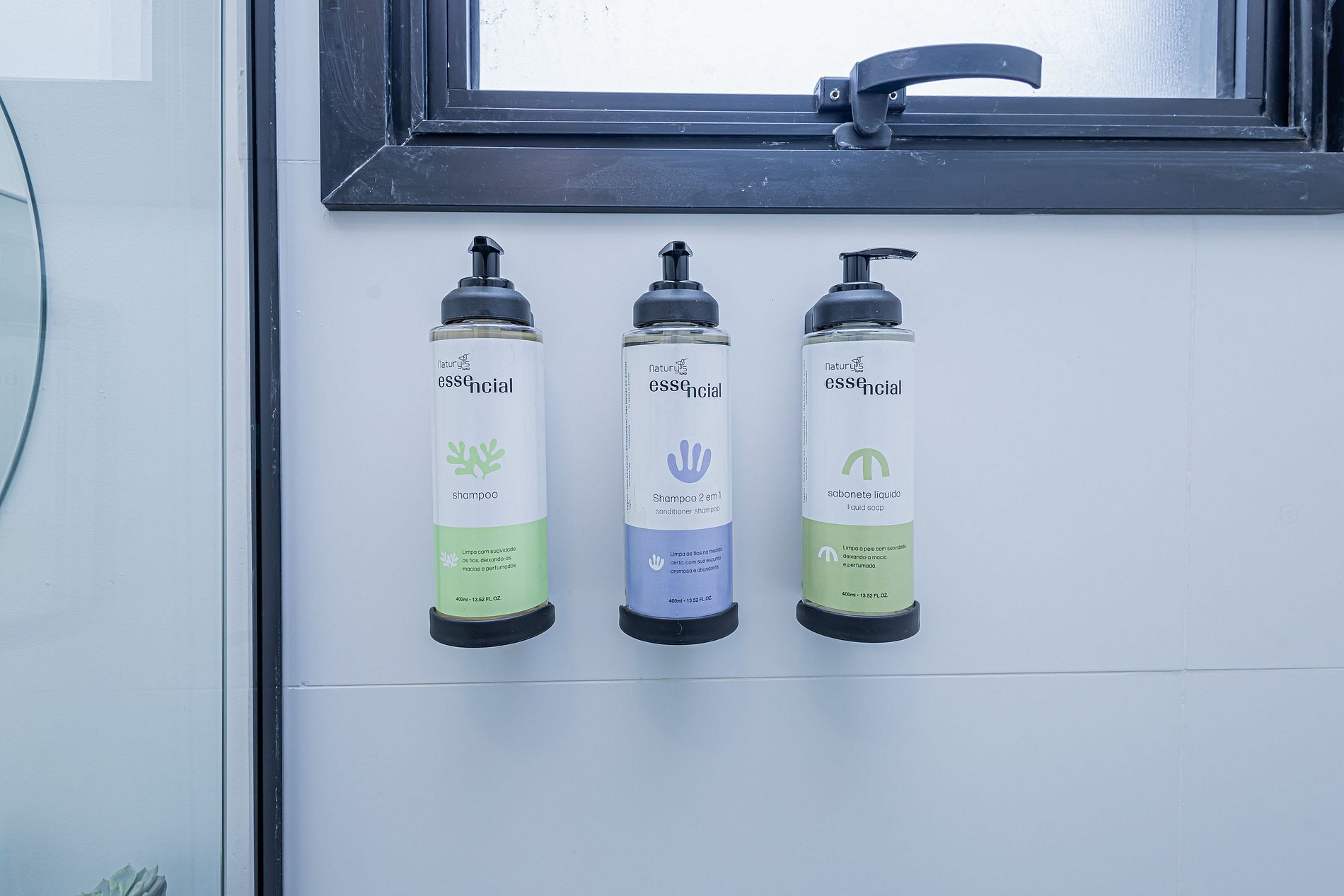 • Banheiro completo: Todas as amenidades de higiene estão à sua disposição, como shampoo, condicionador e sabonete líquido.