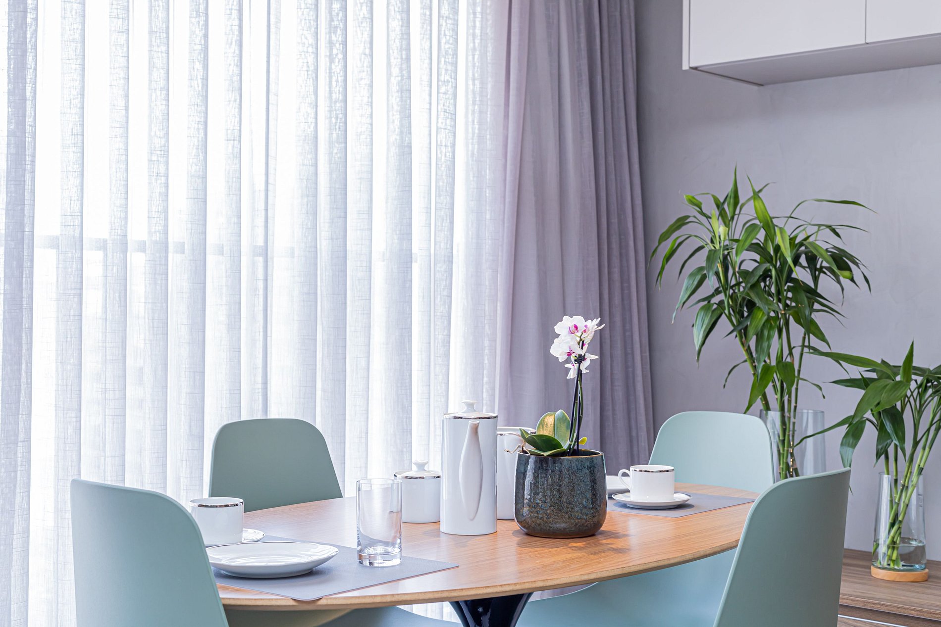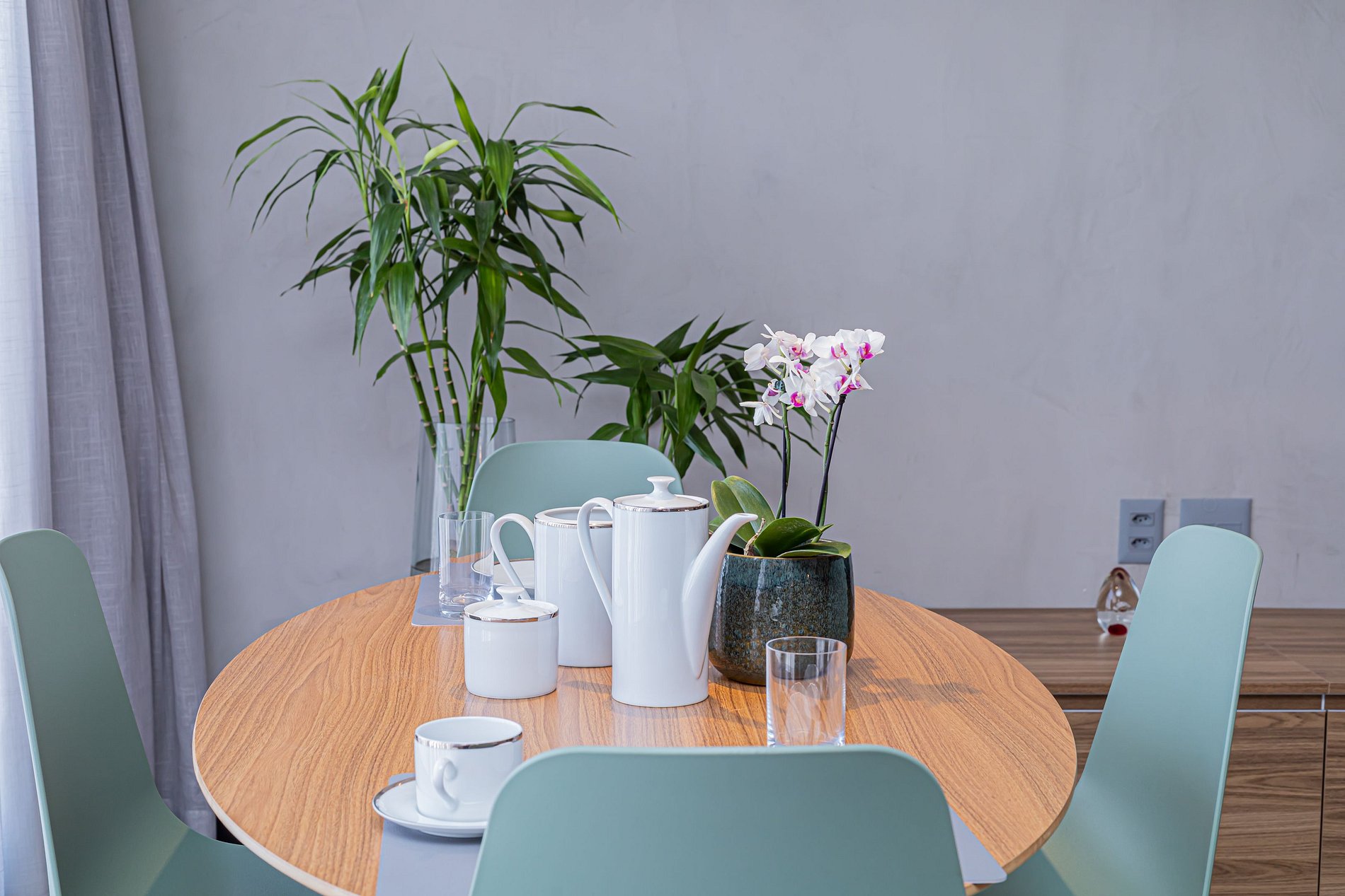 • Mesa com quatro cadeiras, ideal para refeições ou até como espaço de trabalho.