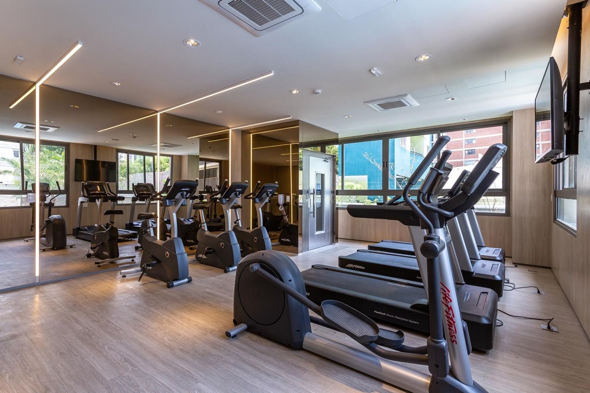 • Academia de Dois Andares: Super equipada, com aparelhos modernos para treinos completos e confortáveis.