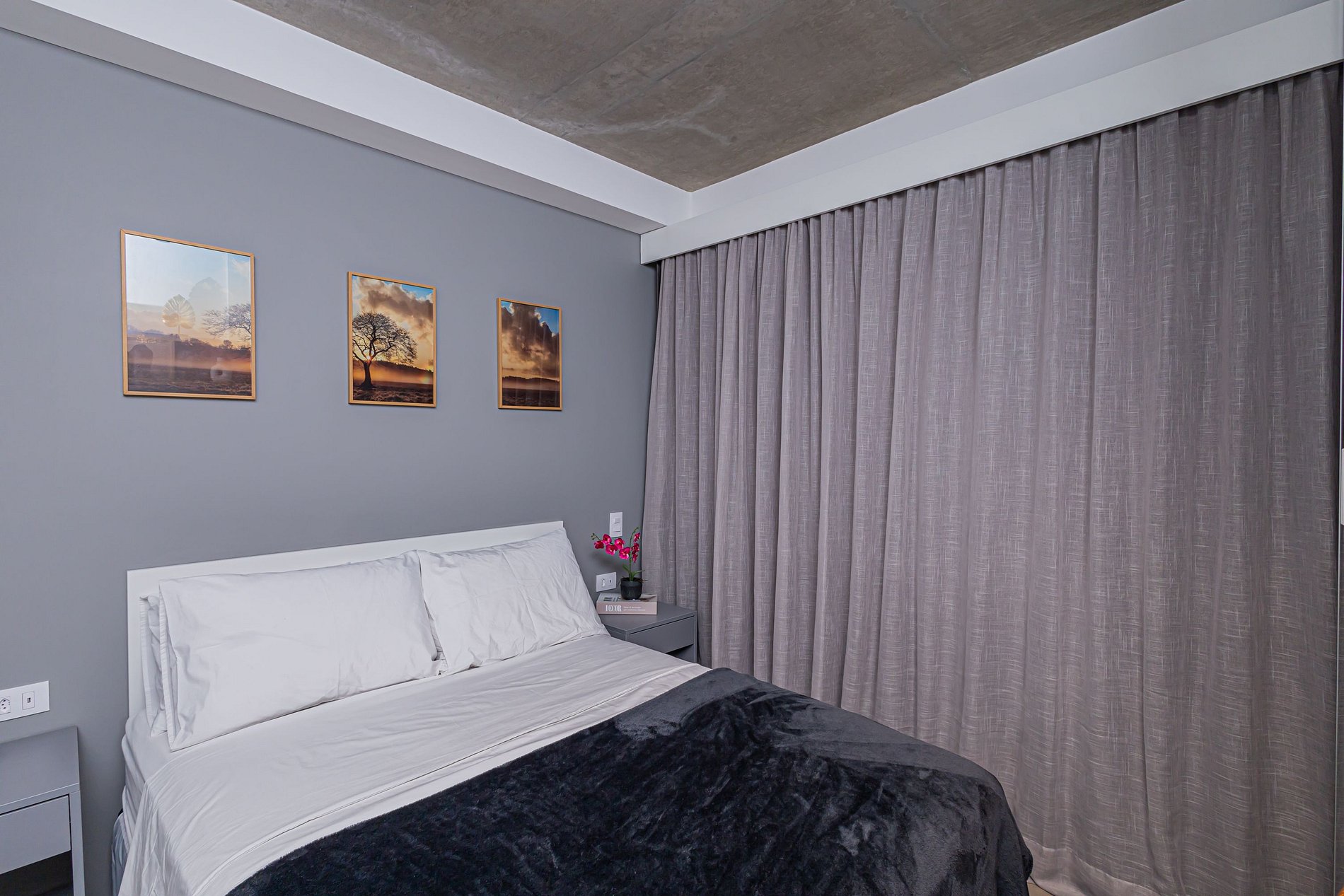 Cama com enxoval padrão hotelaria premium.