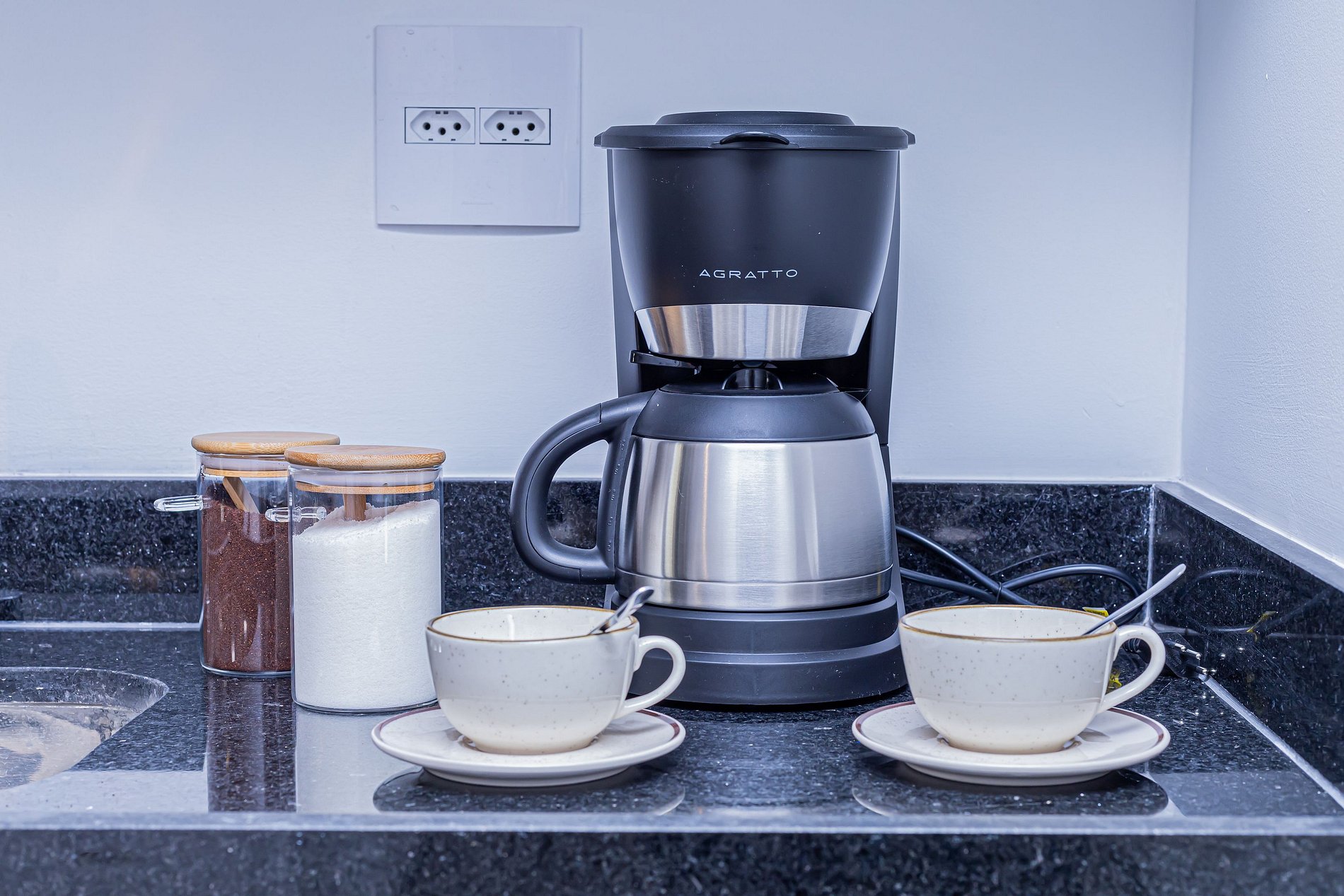 O condomínio oferece CAFÉ DA MANHÃ com padrão de hotelaria, servido todos os dias das 07h às 10h30, no 9º andar.