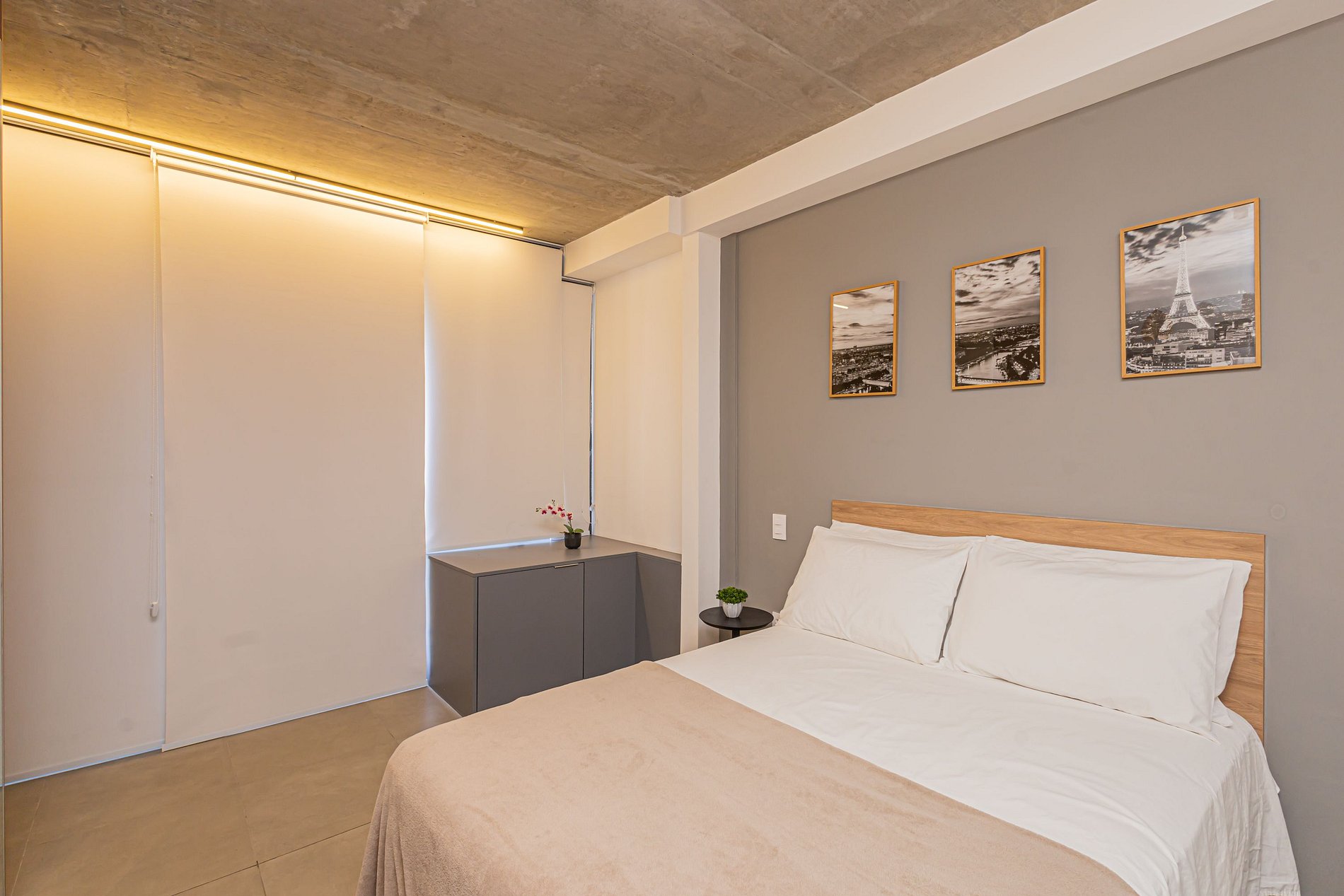 Cama com enxoval padrão hotelaria premium.