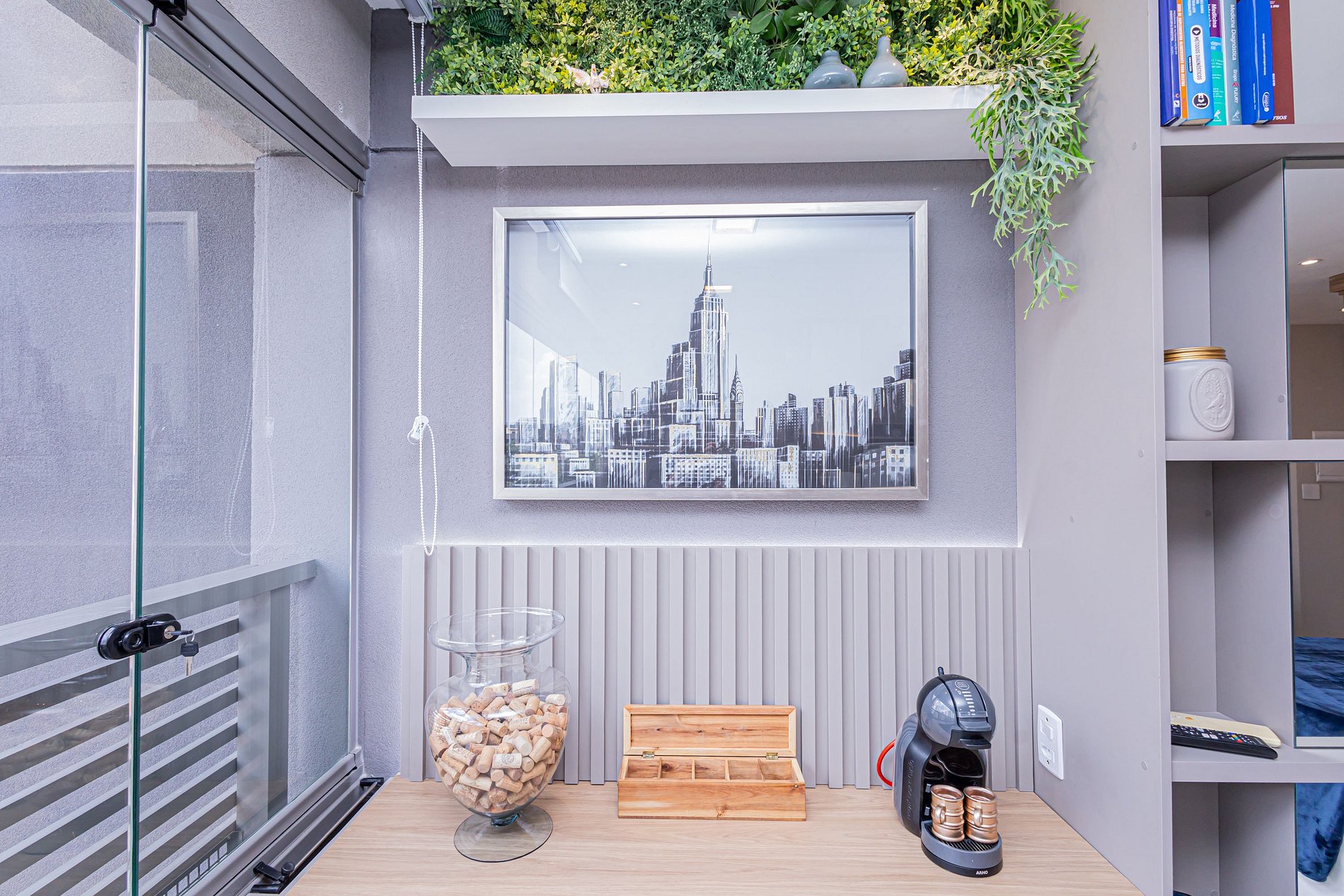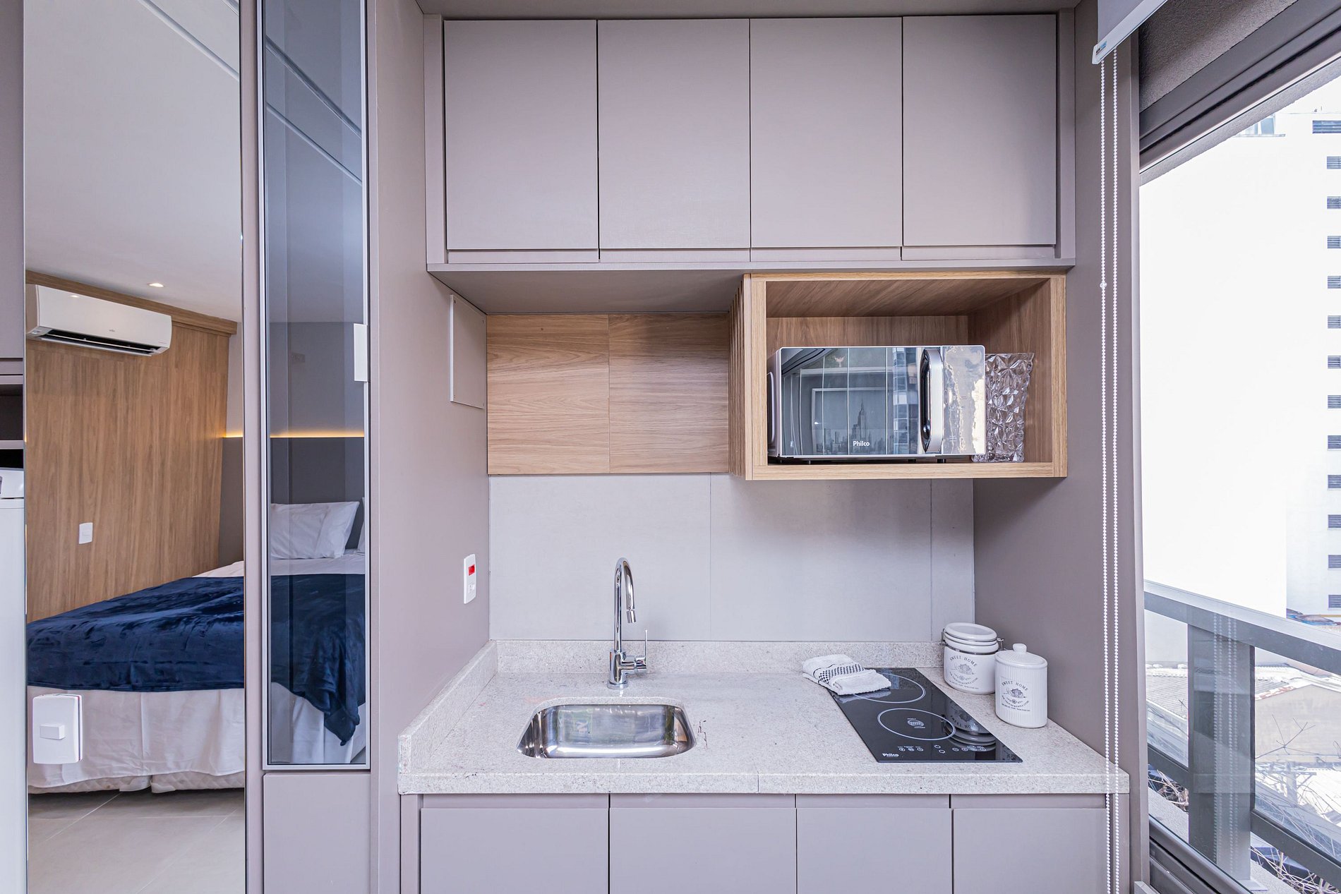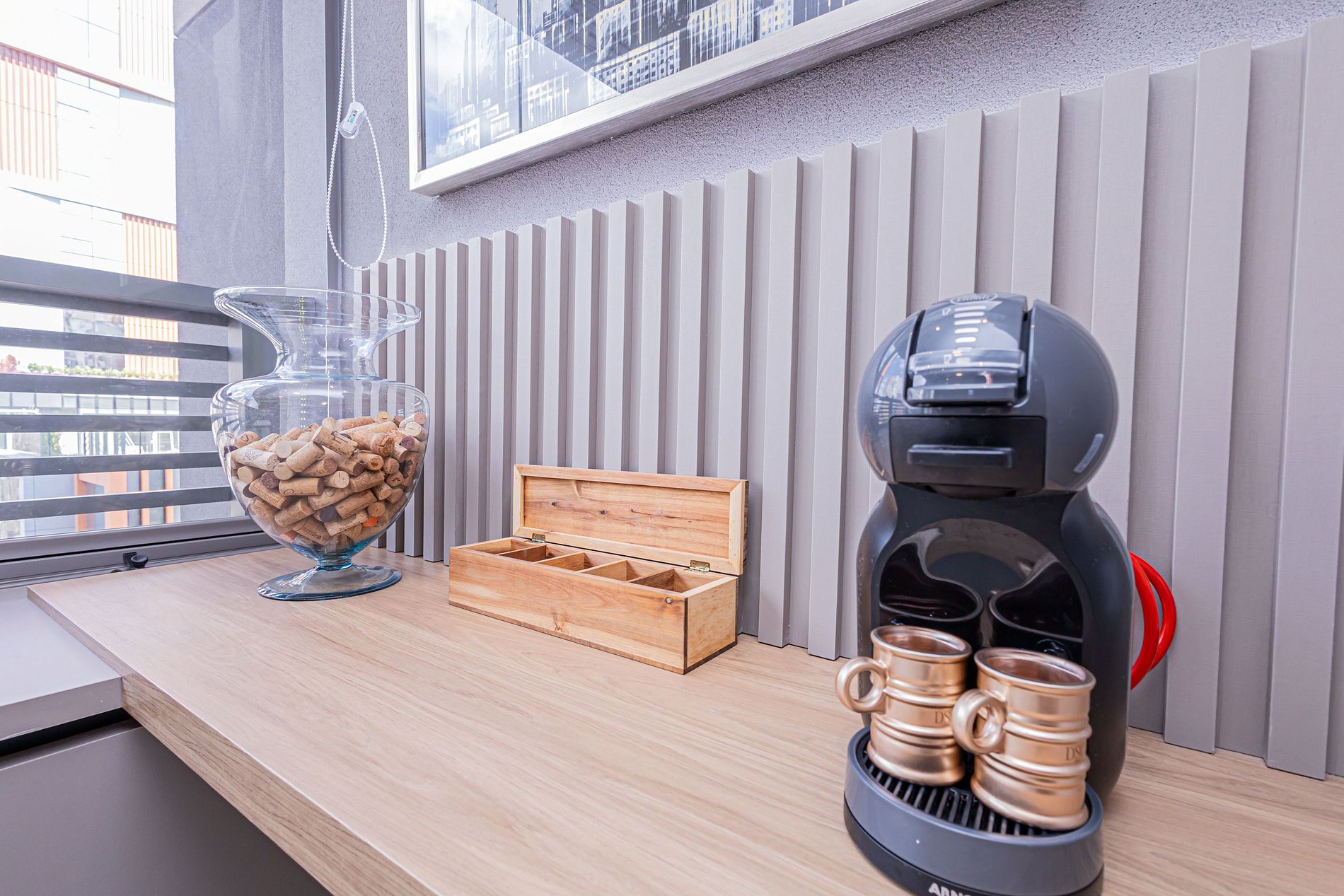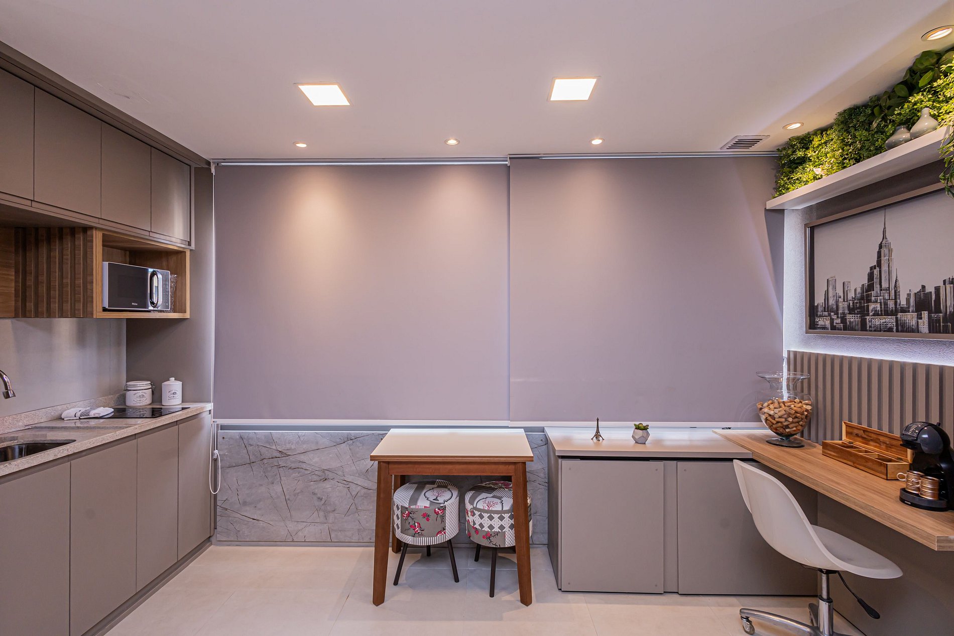 -Cozinha equipada com cafeteira elétrica.