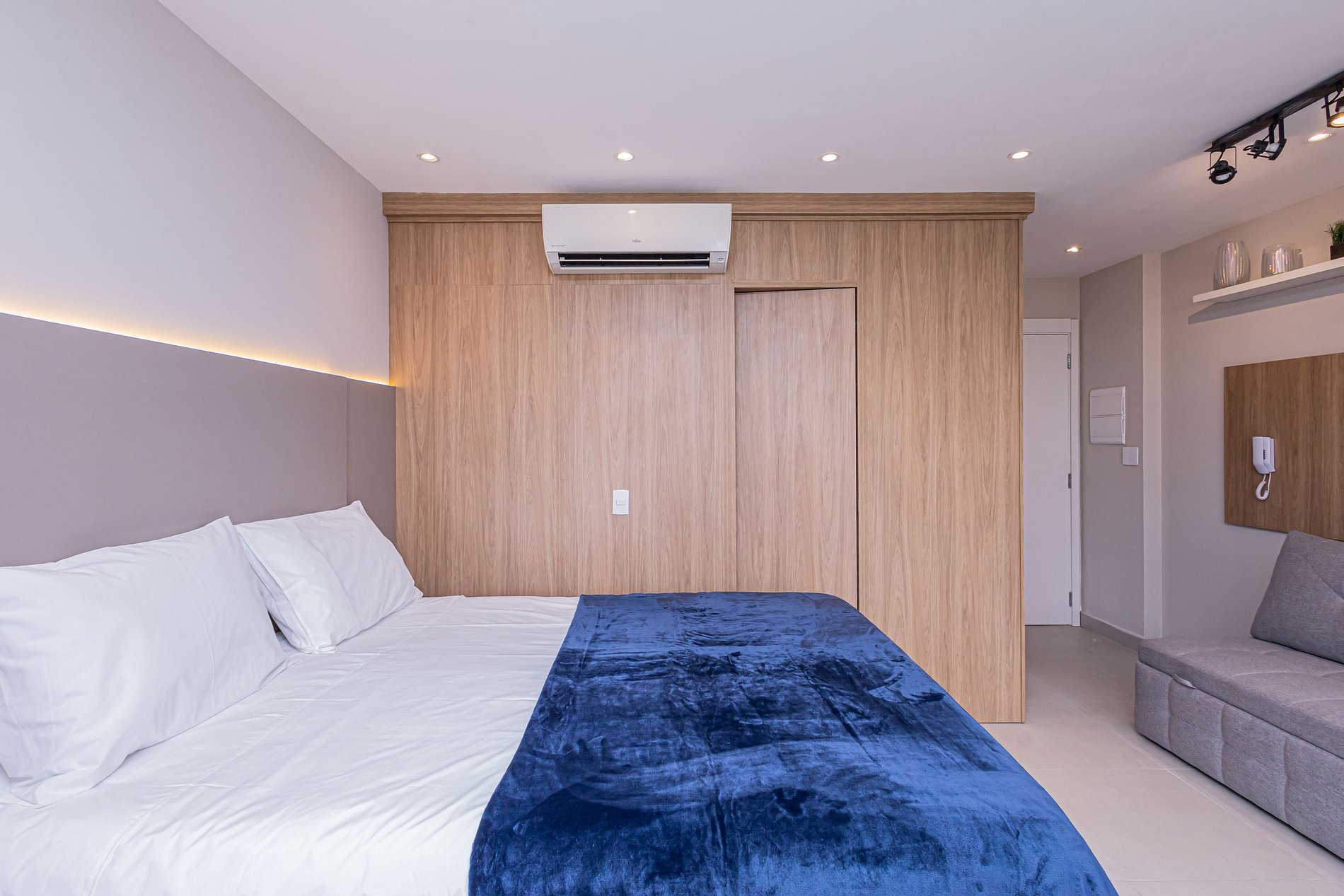 - Cama casal com enxoval padrão hotelaria premium