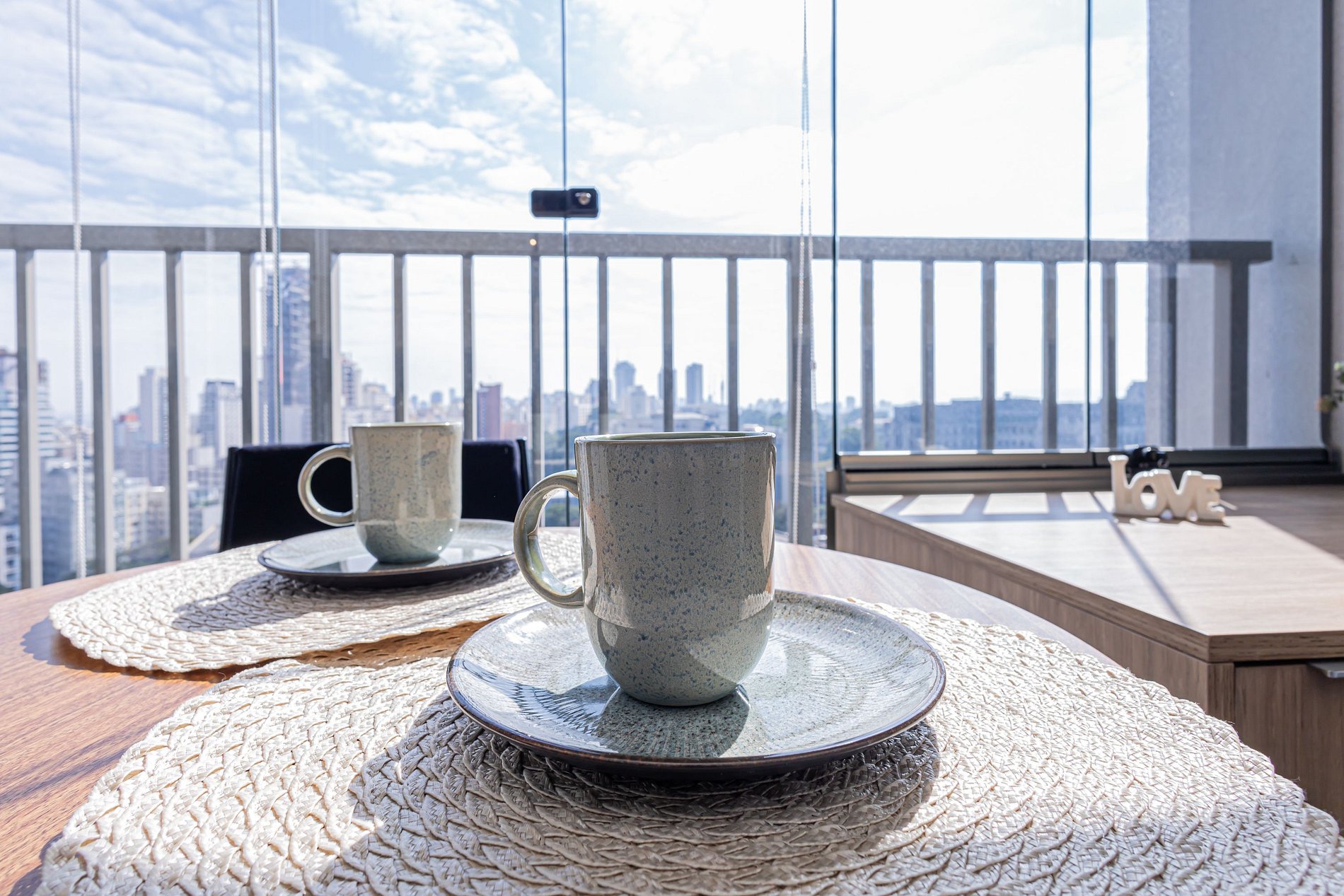 O condomínio oferece CAFÉ DA MANHÃ com padrão de hotelaria, servido todos os dias das 07h às 10h30, no 9º andar.